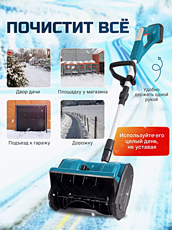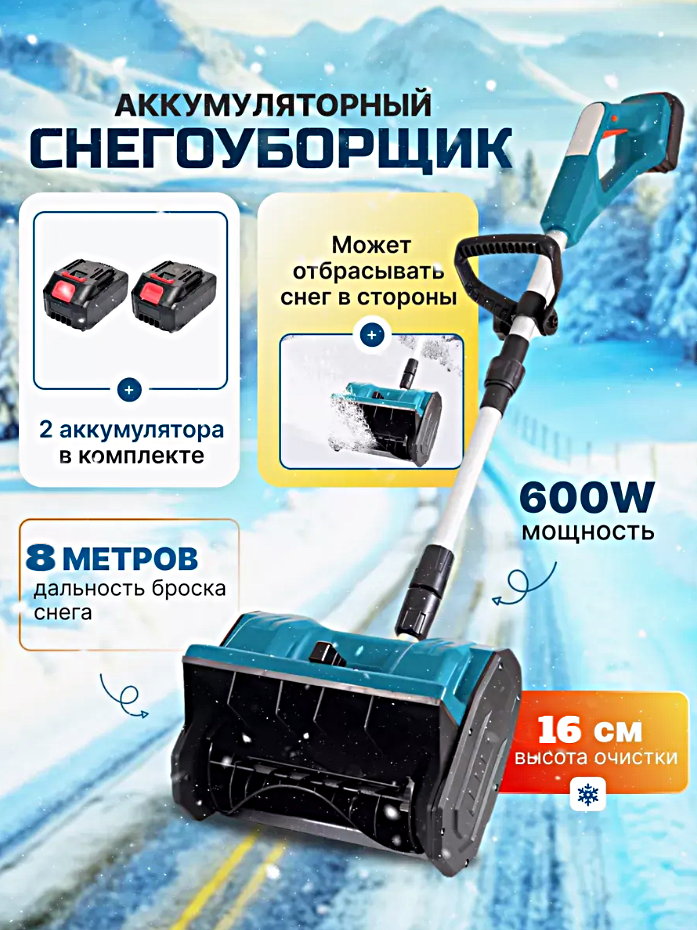 Снегоуборщик аккумуляторный c регулировкой выброса, Аккумуляторная лопата для уборки снега, 600 Вт, Синий интересное: