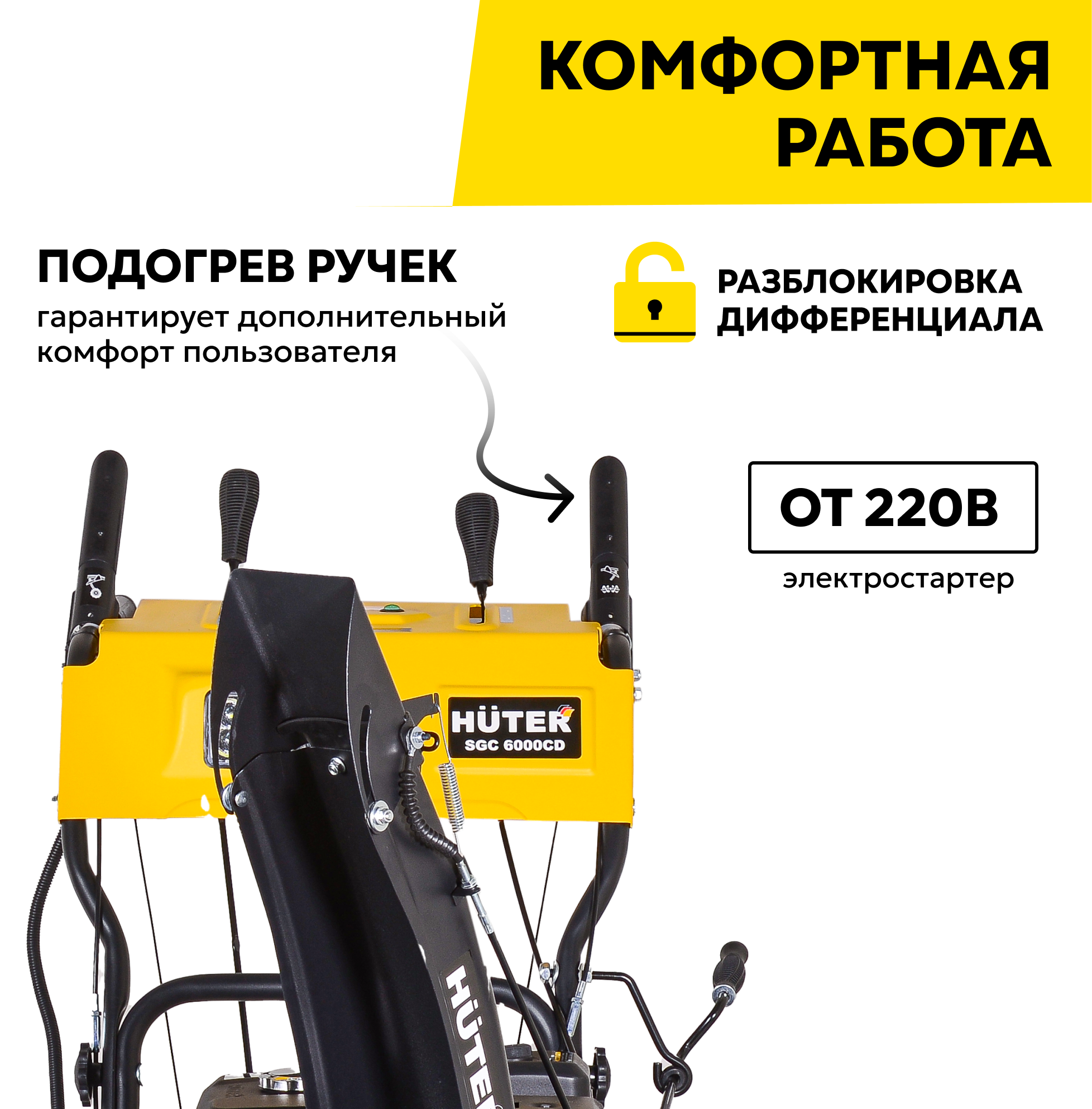 Снегоуборщик HUTER SGC 6000CD, 8 л. с. 62х54см, 6 вперед/2 назад, электростартер от 220 В интересное: