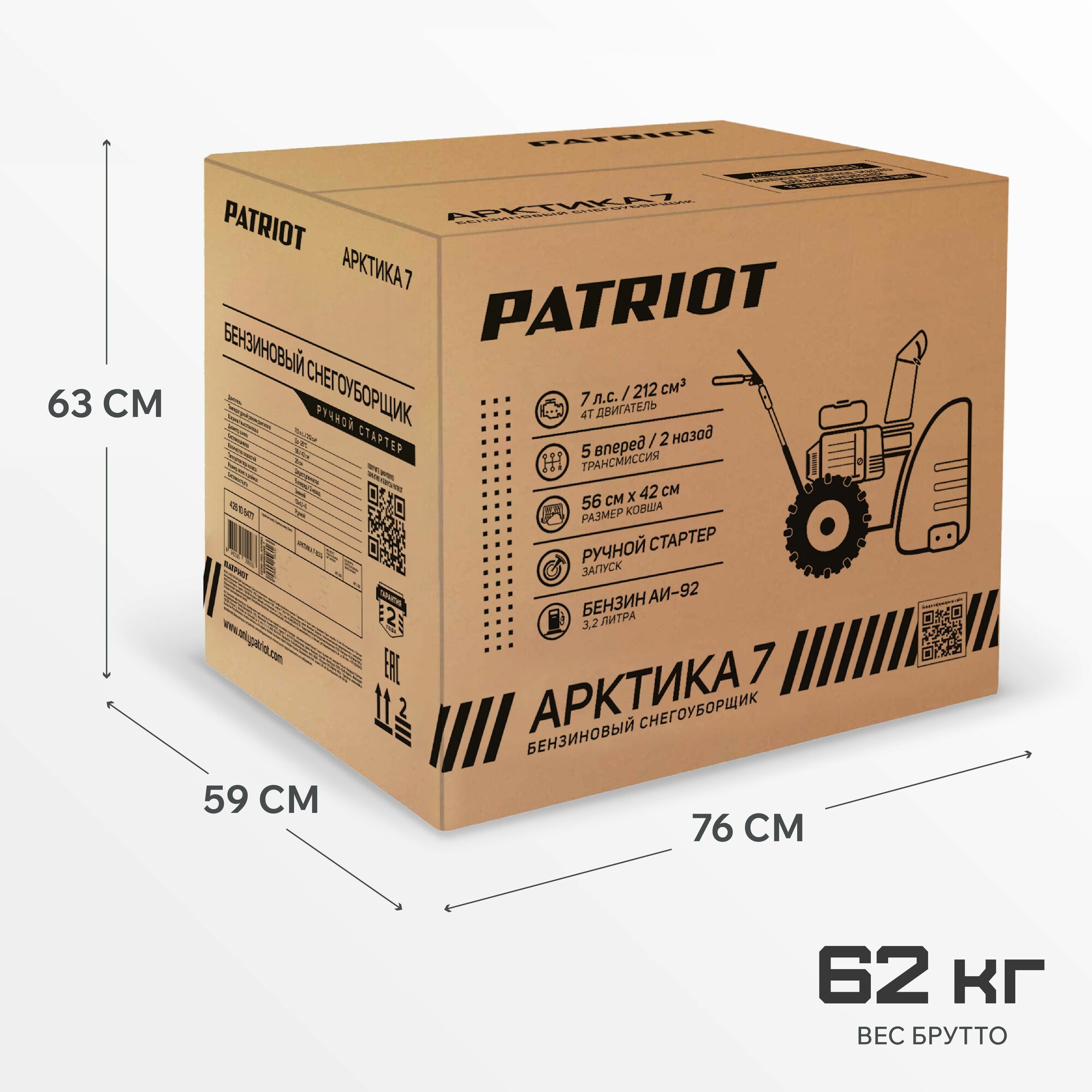 Снегоуборщик бензиновый PATRIOT арктика 7, ковш 56 см, 7 л. с, дальность выброса 10 м интересное: