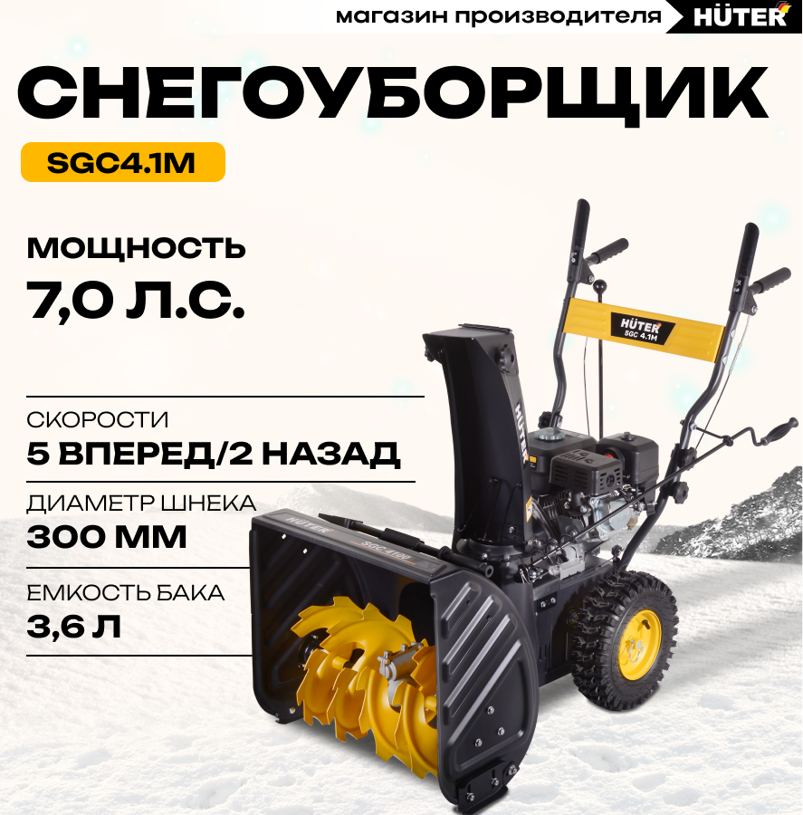Купить Снегоуборщик HUTER SGC 4.1M, колесный, бензиновый, самоходный, защита от перегрузок