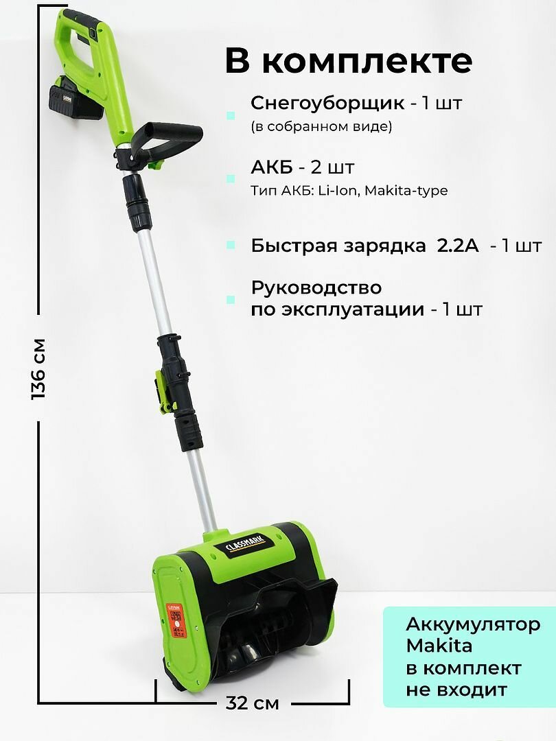 Снегоуборщик аккумуляторный Classmark HD2344-C электролопата для уборки снега, 4000 мАч, ручной интересное:
