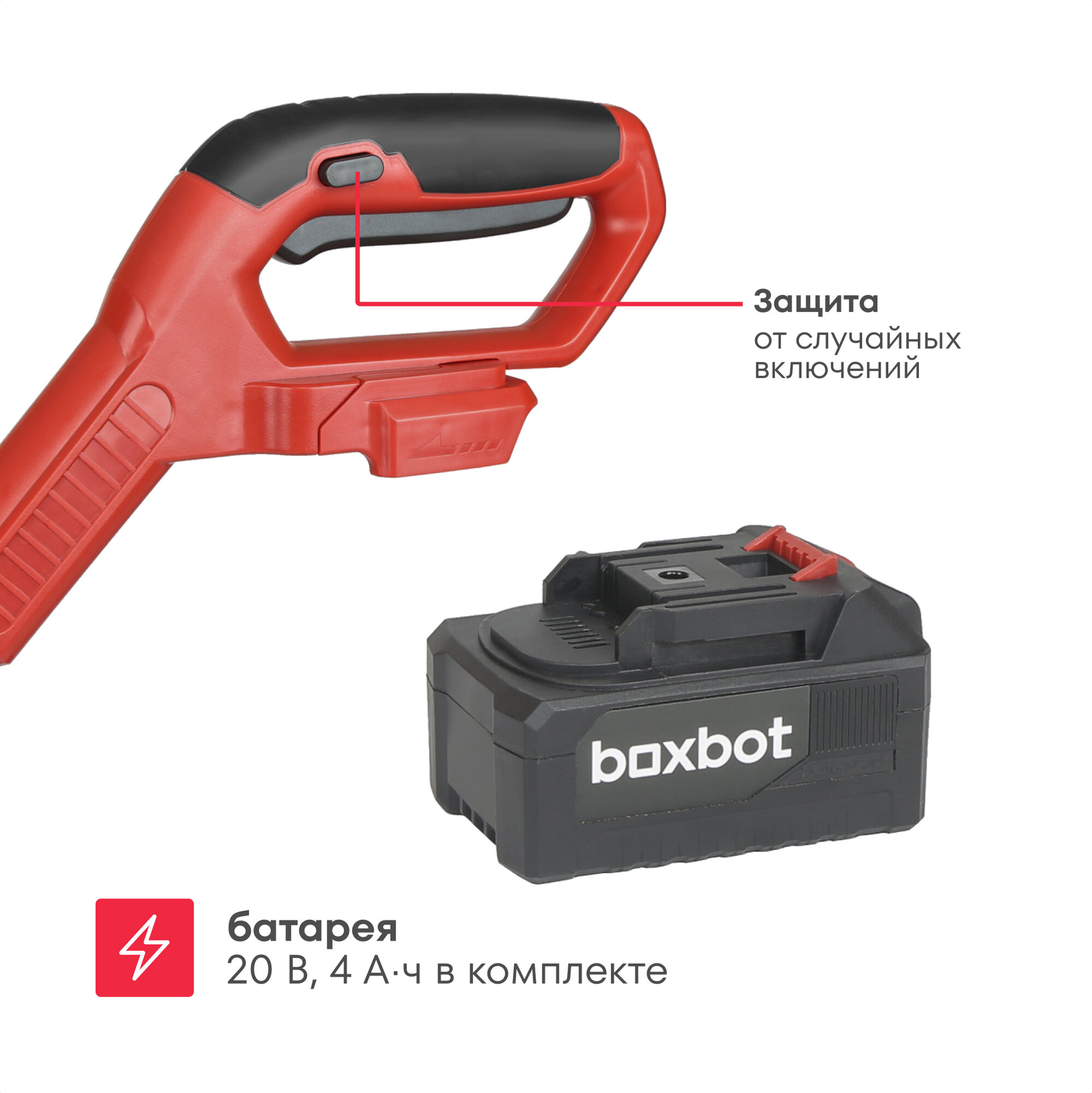 Снегоуборщик аккумуляторный ручной Boxbot AS 201, 20В, ковш 30 см, аккумулятор 4Ач + ЗУ в комплекте интересное: