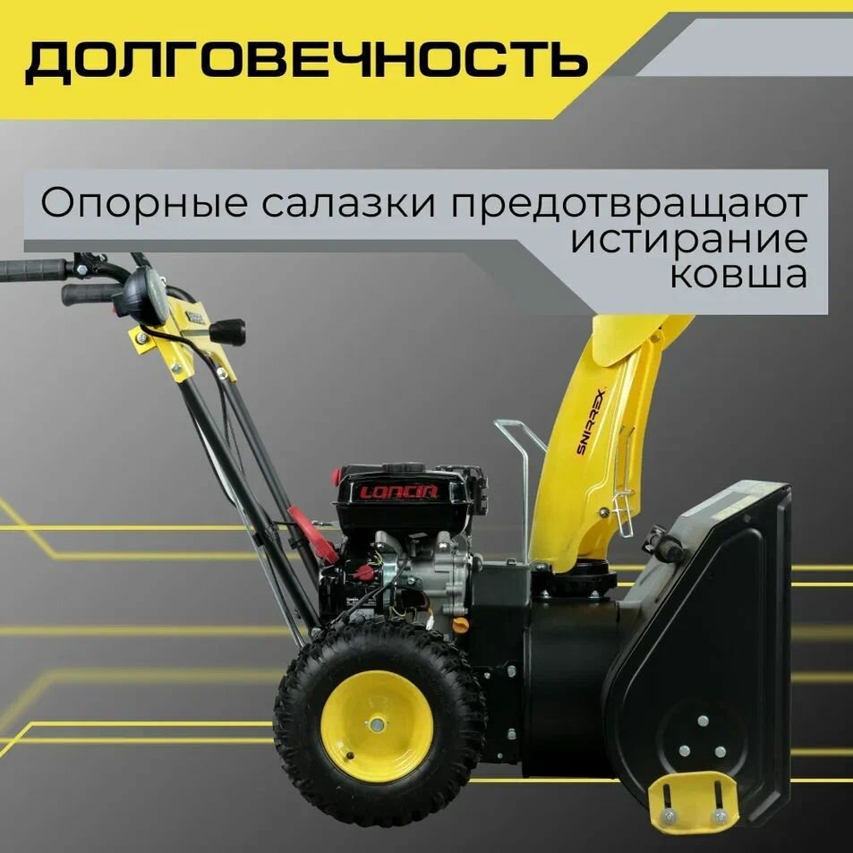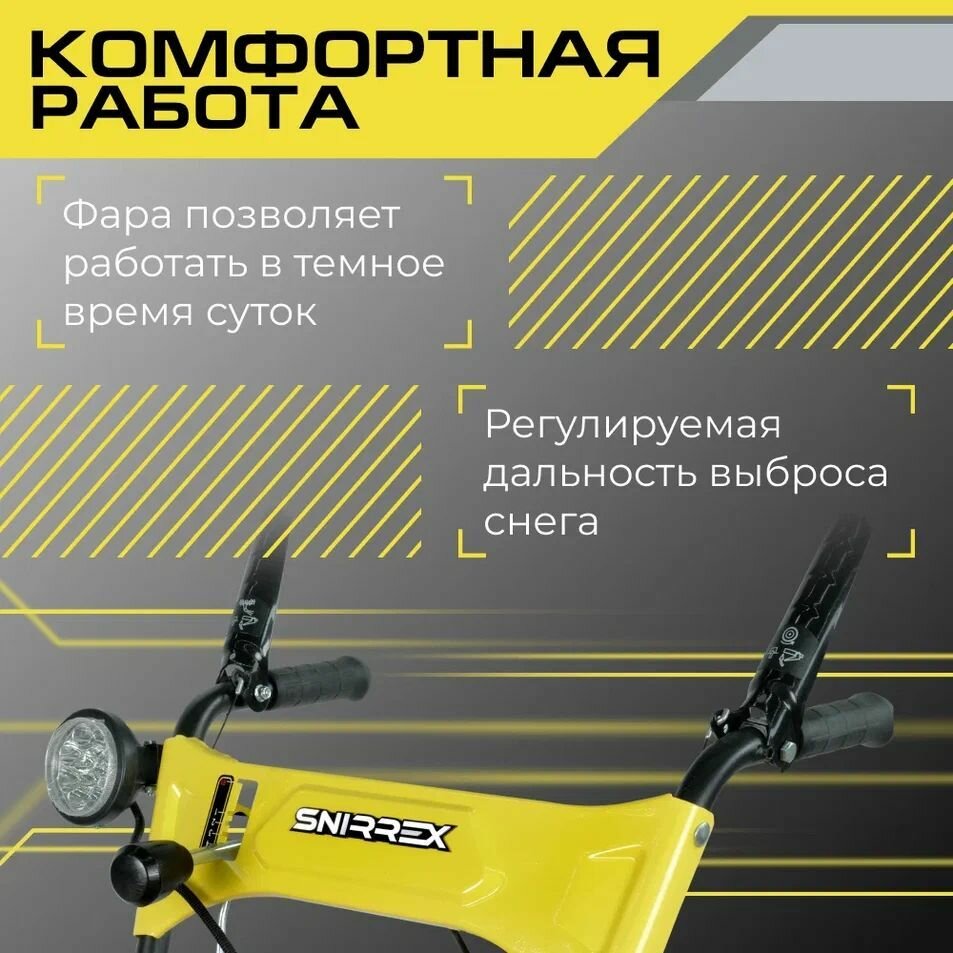 Снегоуборщик бензиновый Snirrex SLC 6553FM, LONCIN 6,5л. с, захват 530х510, 4/1, фара интересное: