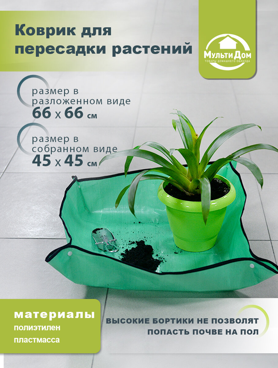 Коврик для пересадки растений, полиэтилен, водонепроницаемый, размер 66х66 см. интересное: