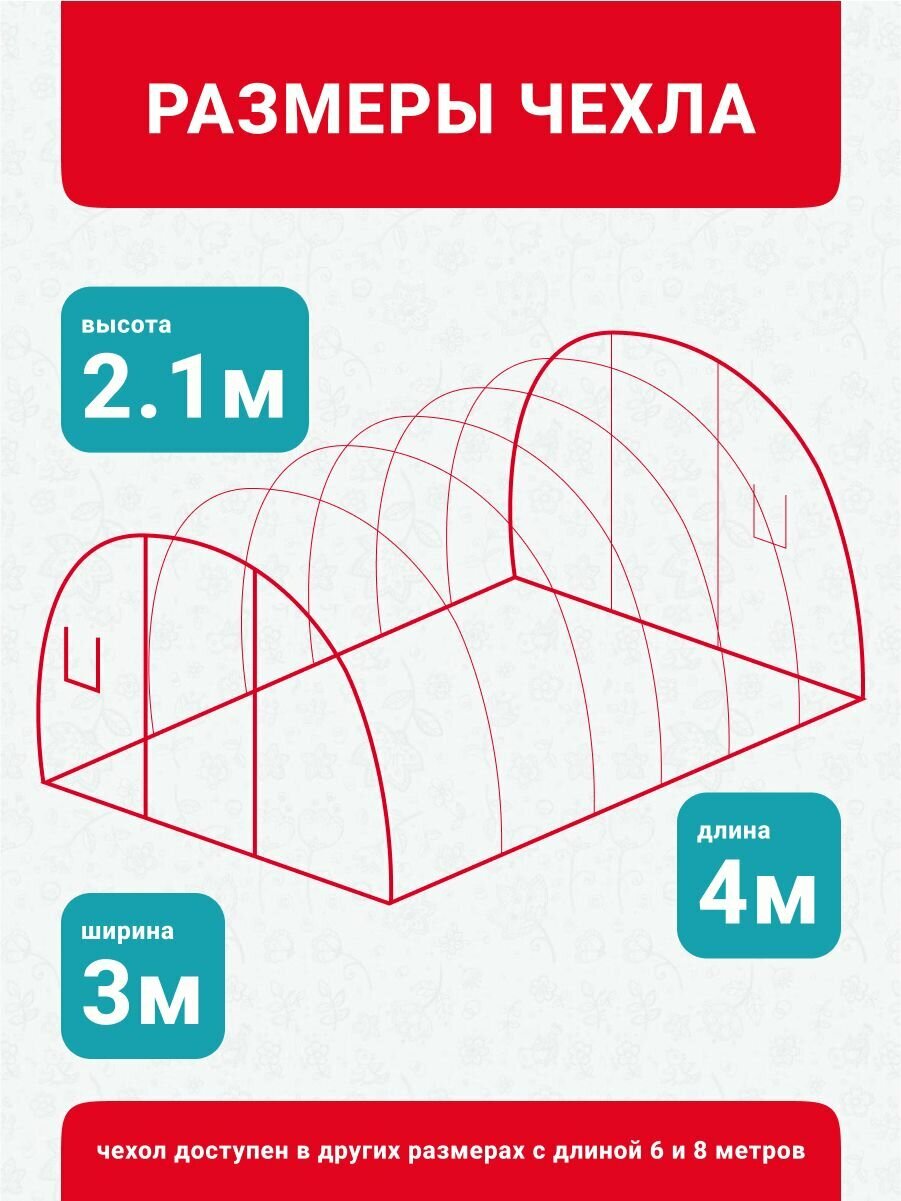 Чехол на теплицу 3х4м стандарт (форточки на замке) из армированной пленки (леска) на теплицу 200 г/кв. м, 200 мкм. интересное: