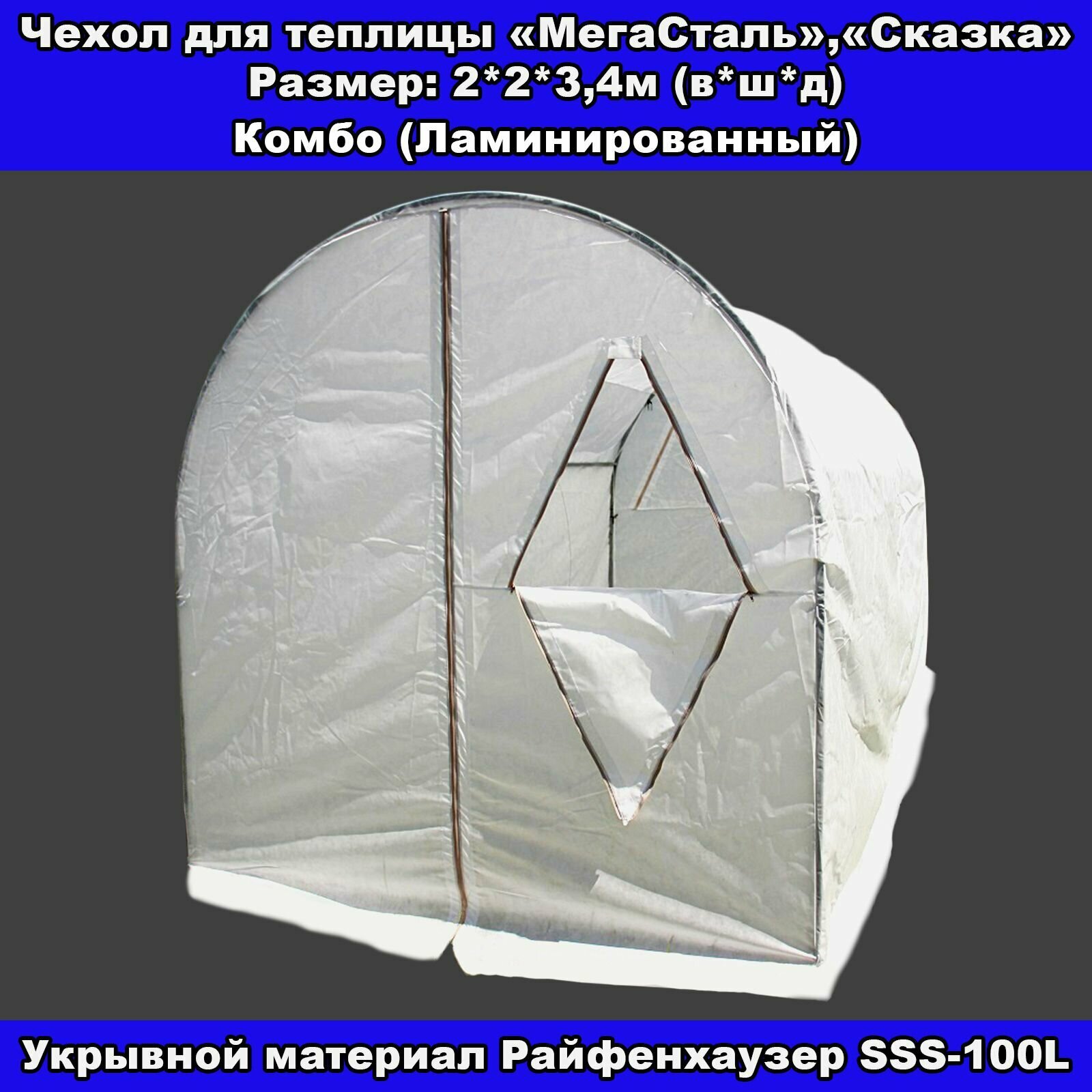 Купить Чехол для теплицы "МегаСталь","Сказка" 2*2*3,4 м (в*ш*д) из укрывного материала Райфенхаузер SSS100L, тип "Комбо" (Ламинированный)