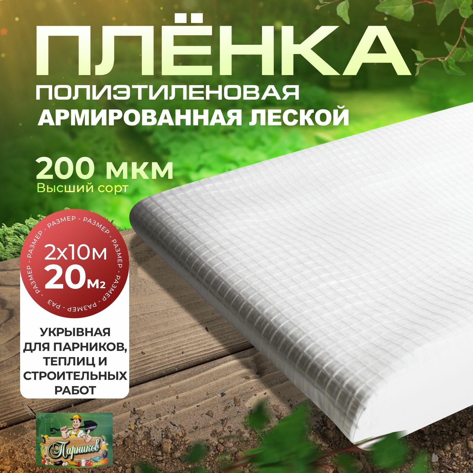 Пленка армированная леской 200 мкм 2х10 метров в упаковке Парников интересное: