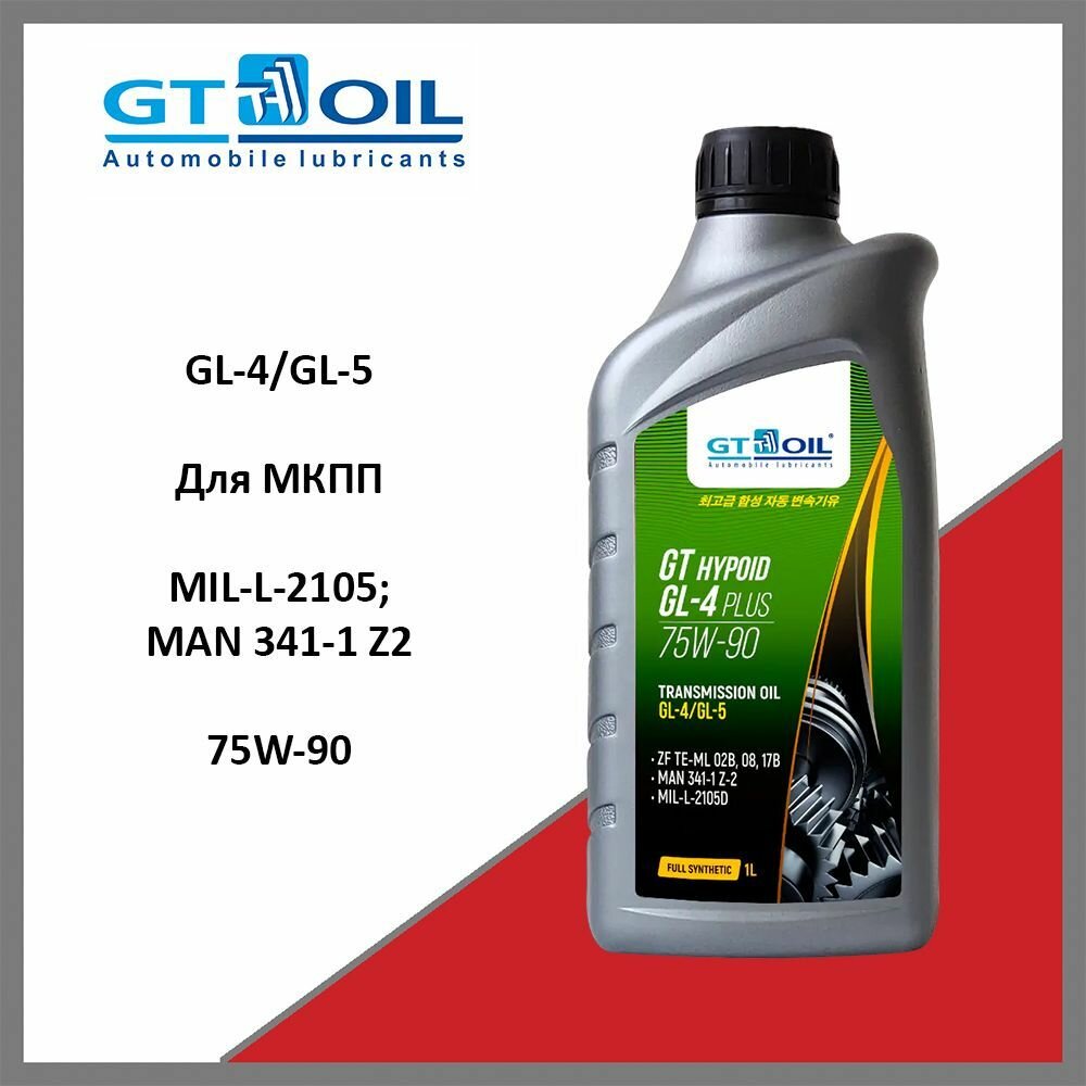 GT OIL Масло Hypoid GL-4 Plus, SAE 75W-90, API GL-4/GL-5, 4л 8809059407998