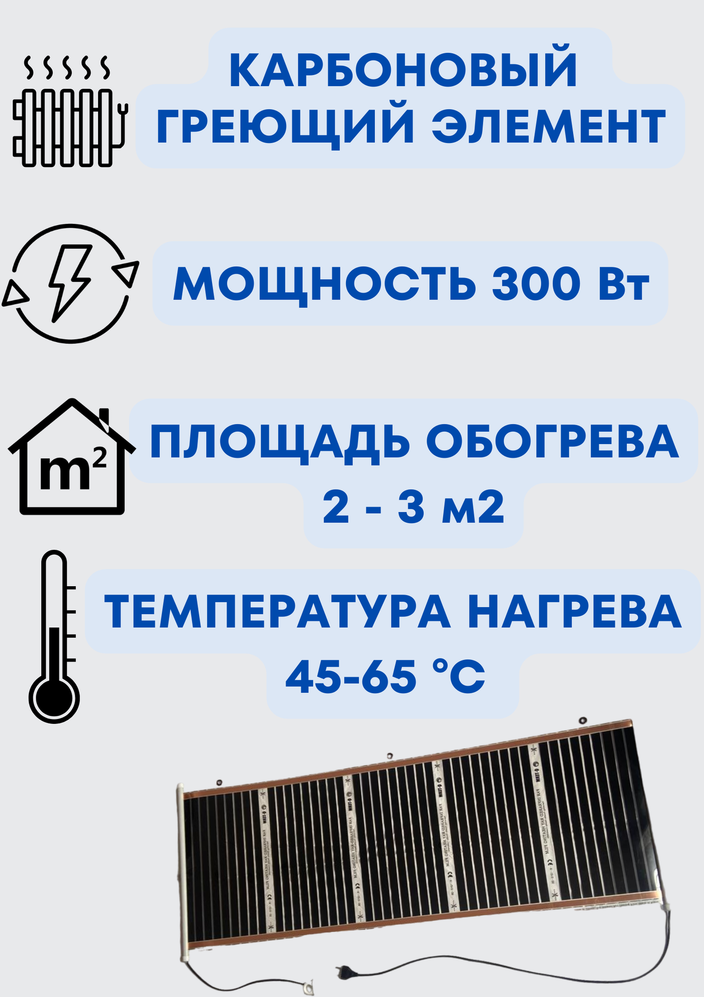 Обогрев теплицы, курятника 150х50 см, мощность 300Вт интересное: