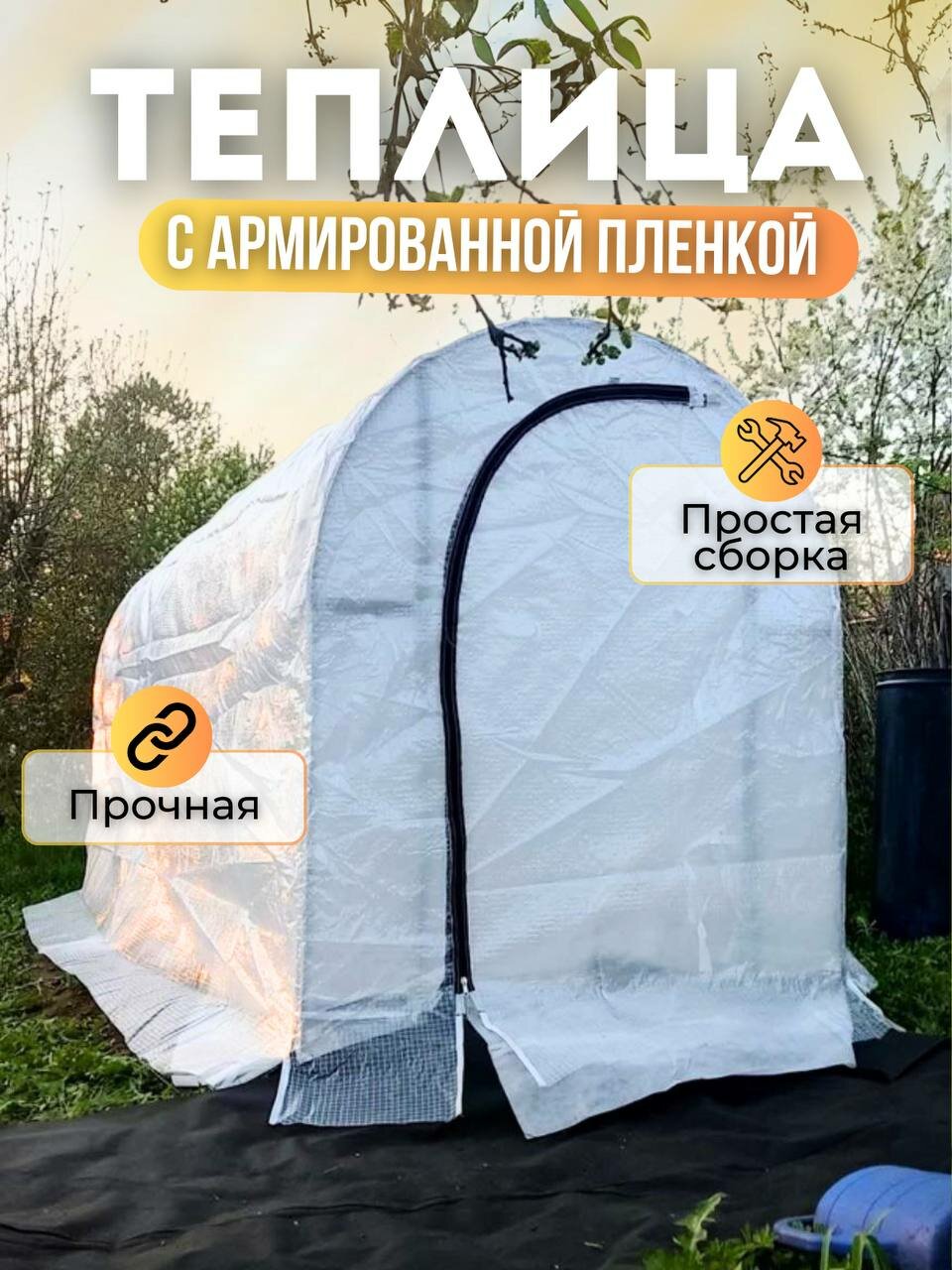 Теплица с металлическим каркасом и чехлом из армированной пленки для сада и дачи 4м интересное: