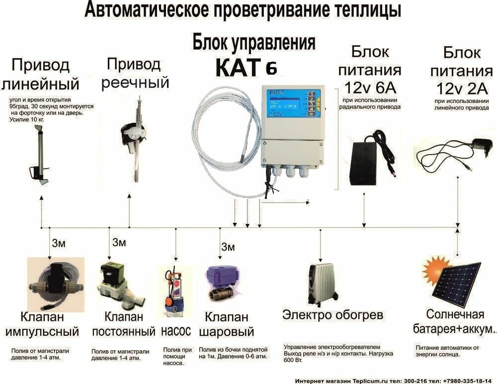 Комплект автоматического проветривания КАТ 6, для теплицы, 2 линейных привода интересное: