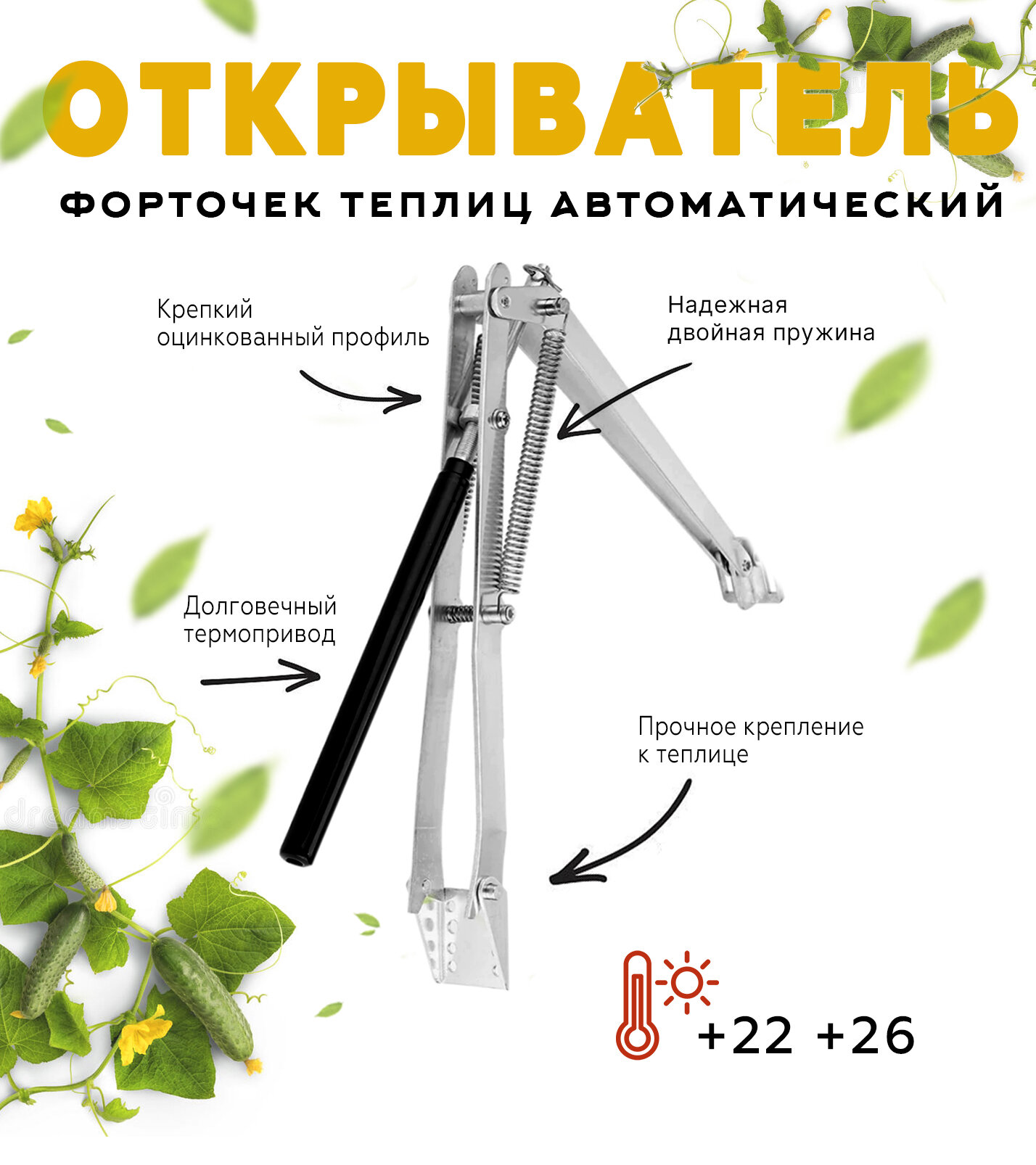 Купить Автомат для проветривания теплицы "Термопривод" с двумя пружинами. Проветриватель на дверь или форточку