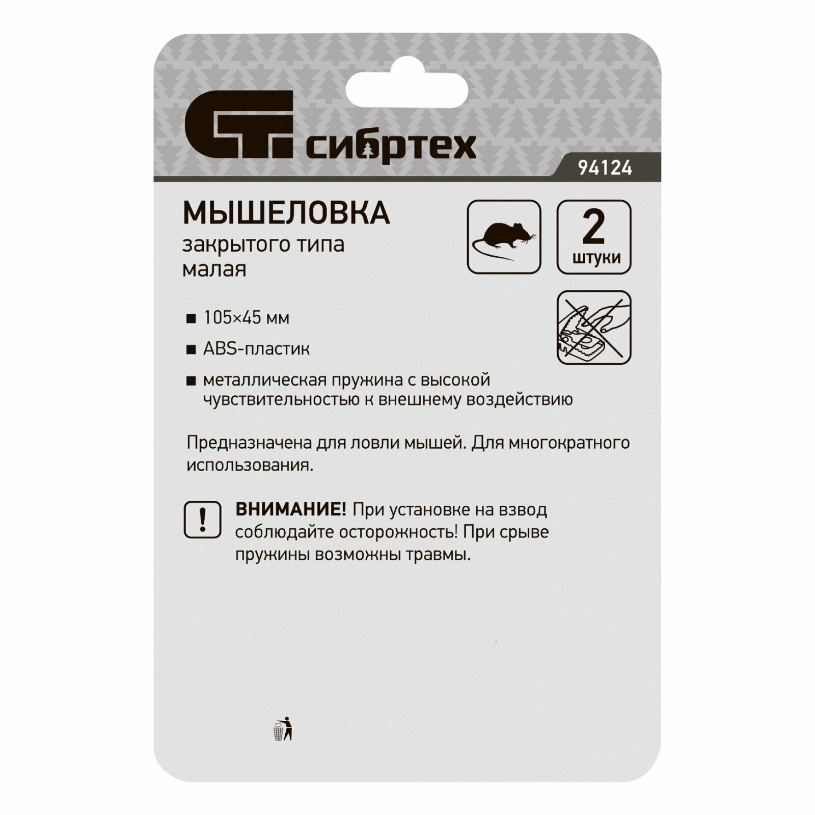Мышеловка пластиковая закрытая Сибртех малая, 105х45 мм, 2 шт 94124 интересное: