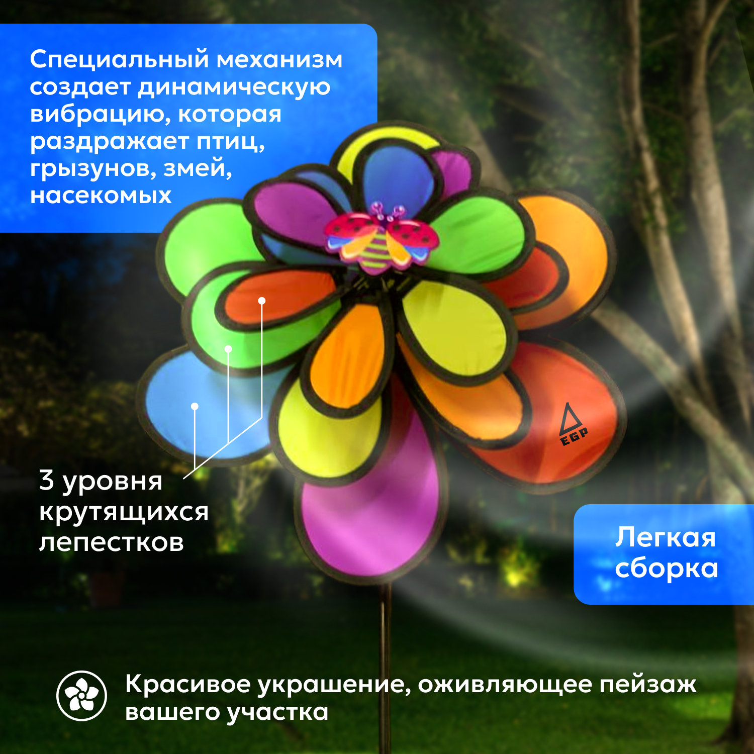 Мельница от садовых вредителей EGP RAIBOW / Ветряная мельница от кротов, змей, грызунов, птиц интересное: