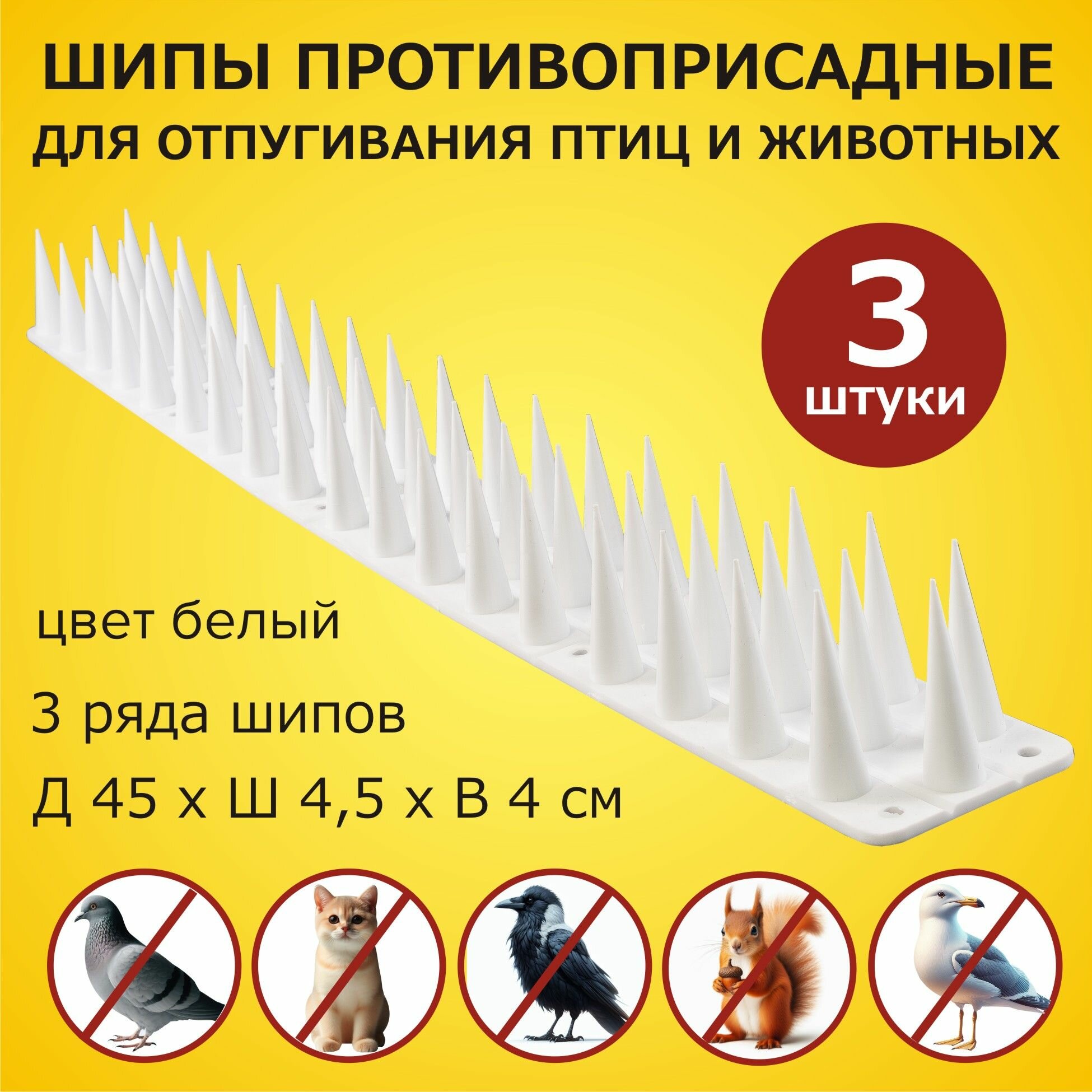 Шипы противоприсадные для защиты от птиц и животных 450х45х40 мм комплект 3 секции, пластик, ЛУК Барьер интересное: