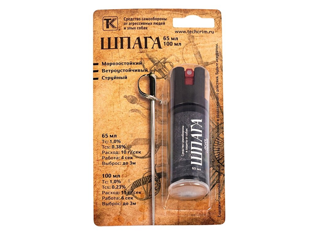 Баллончик Shpaga (Шпага) 65 мл, от злых животных интересное: