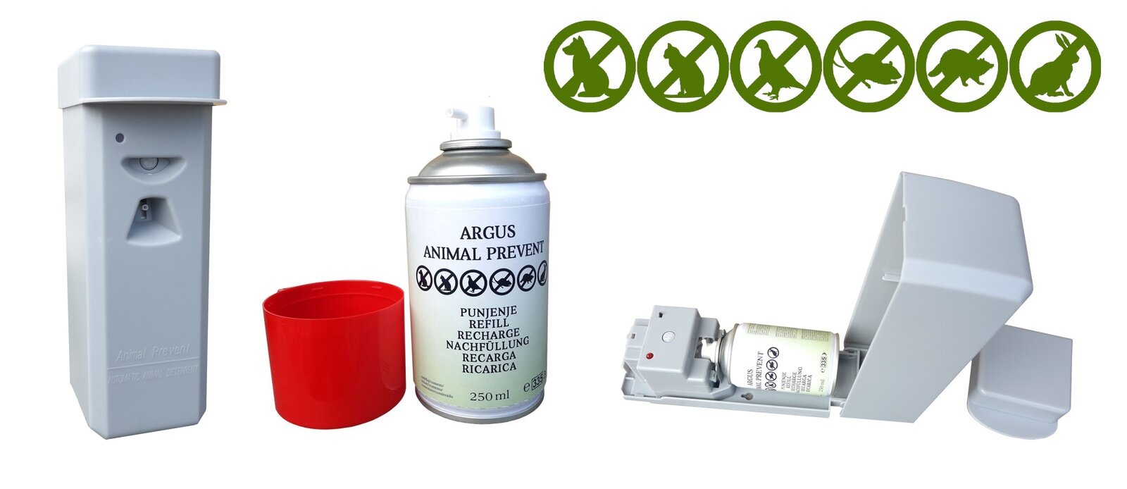 Купить Отпугиватель для защиты объектов от кошек, собак и птиц, с датчиком движения "ARGUS" + баллончик с сжатым воздухом + батарейки (Хорватия)