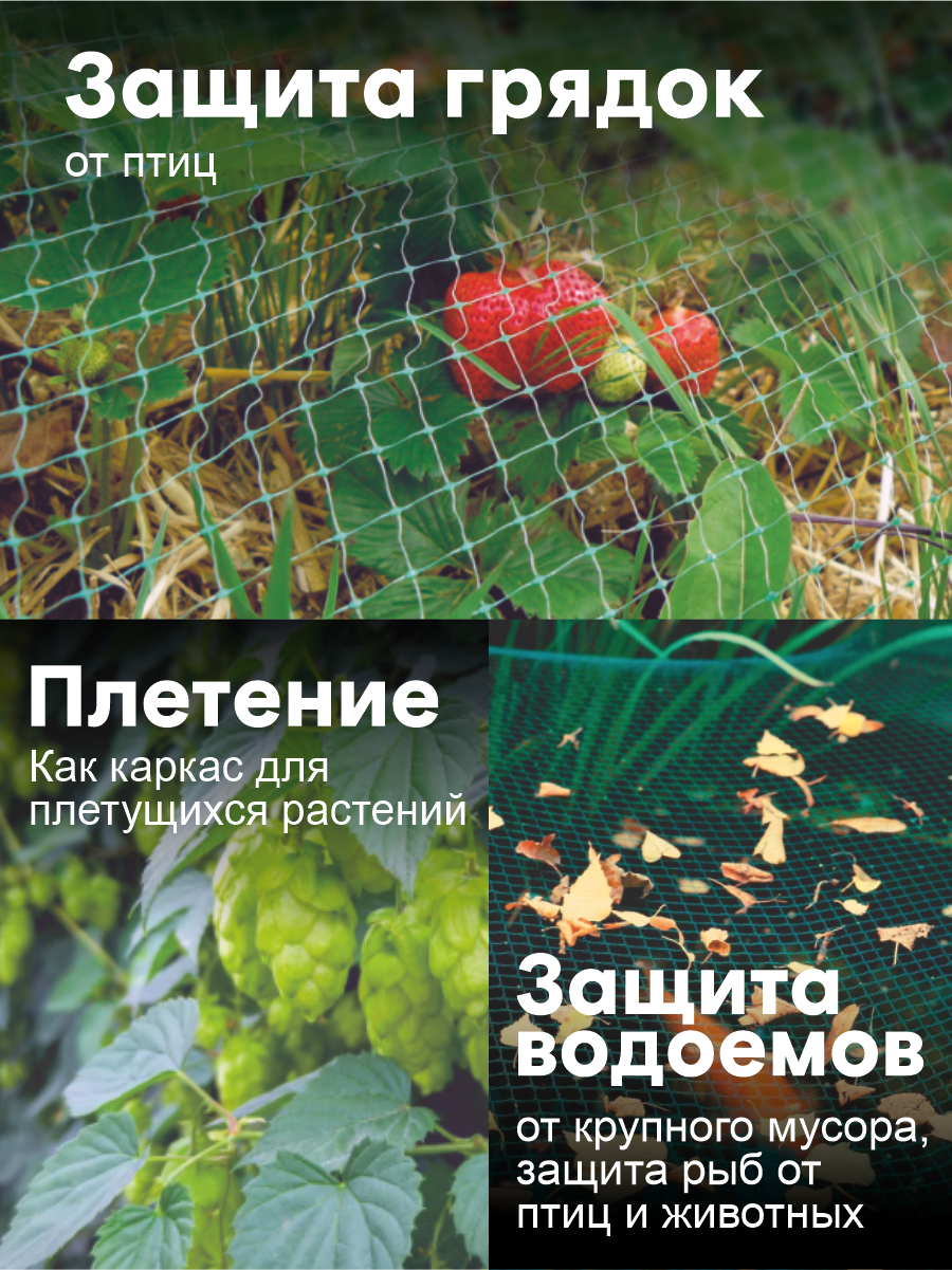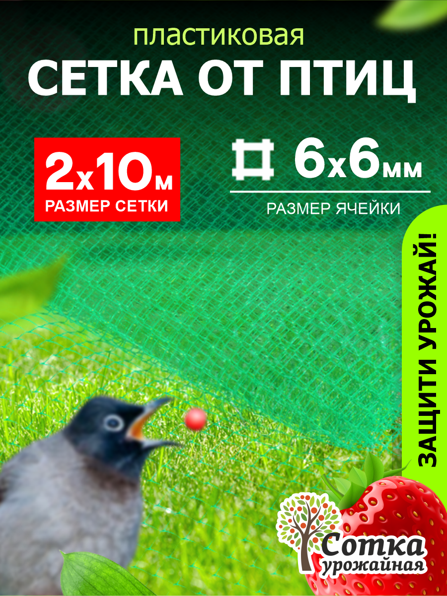 Сетка пластиковая от птиц 6х6 (2 х 10м) Зеленая 'Урожайная сотка' интересное: