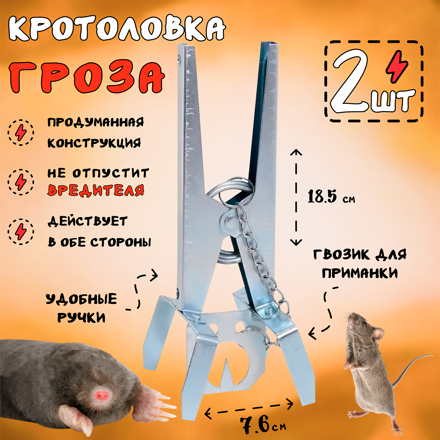 Кротоловка металлическая, капкан для кротов, мышеловка, Гроза, Планета Садовод, Серый, 2 штуки интересное: