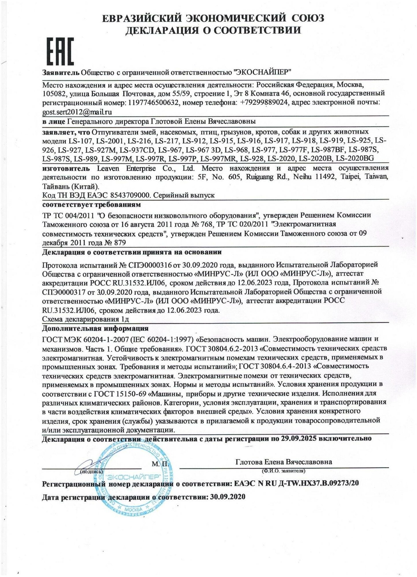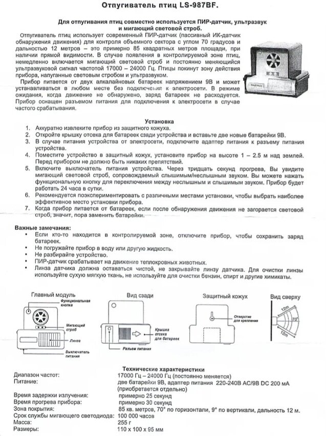 Ультразвуковой отпугиватель птиц с датчиком движения Экоснайпер LS-987BF средство защиты сада, дачи, огорода интересное: