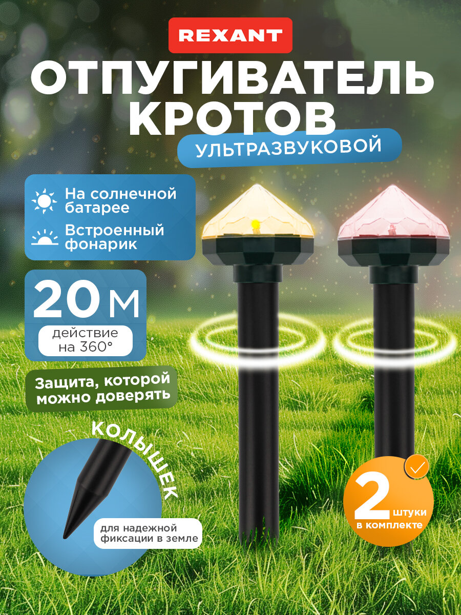 Отпугиватель ультразвуковой REXANT от грызунов, кротов, с подсветкой, 2 шт интересное: