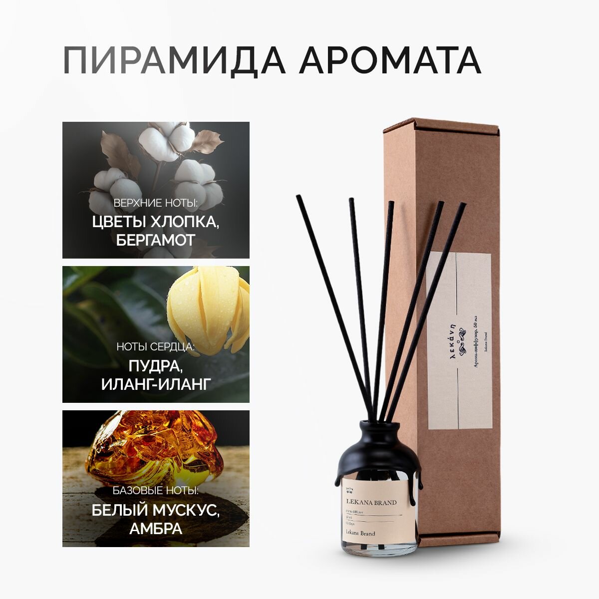 СохранитьДиффузор ароматический для дома с жидкость, ароматизатор с палочками lekana brand Fresh Cotton, хлопок, 50 мл пахучка интересное: