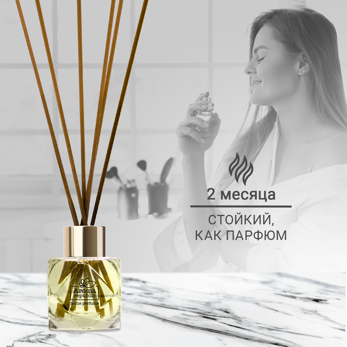 AROMA REPUBLIC Ароматический диффузор в стеклянном флаконе 50 мл,"№58 Magical freesia"