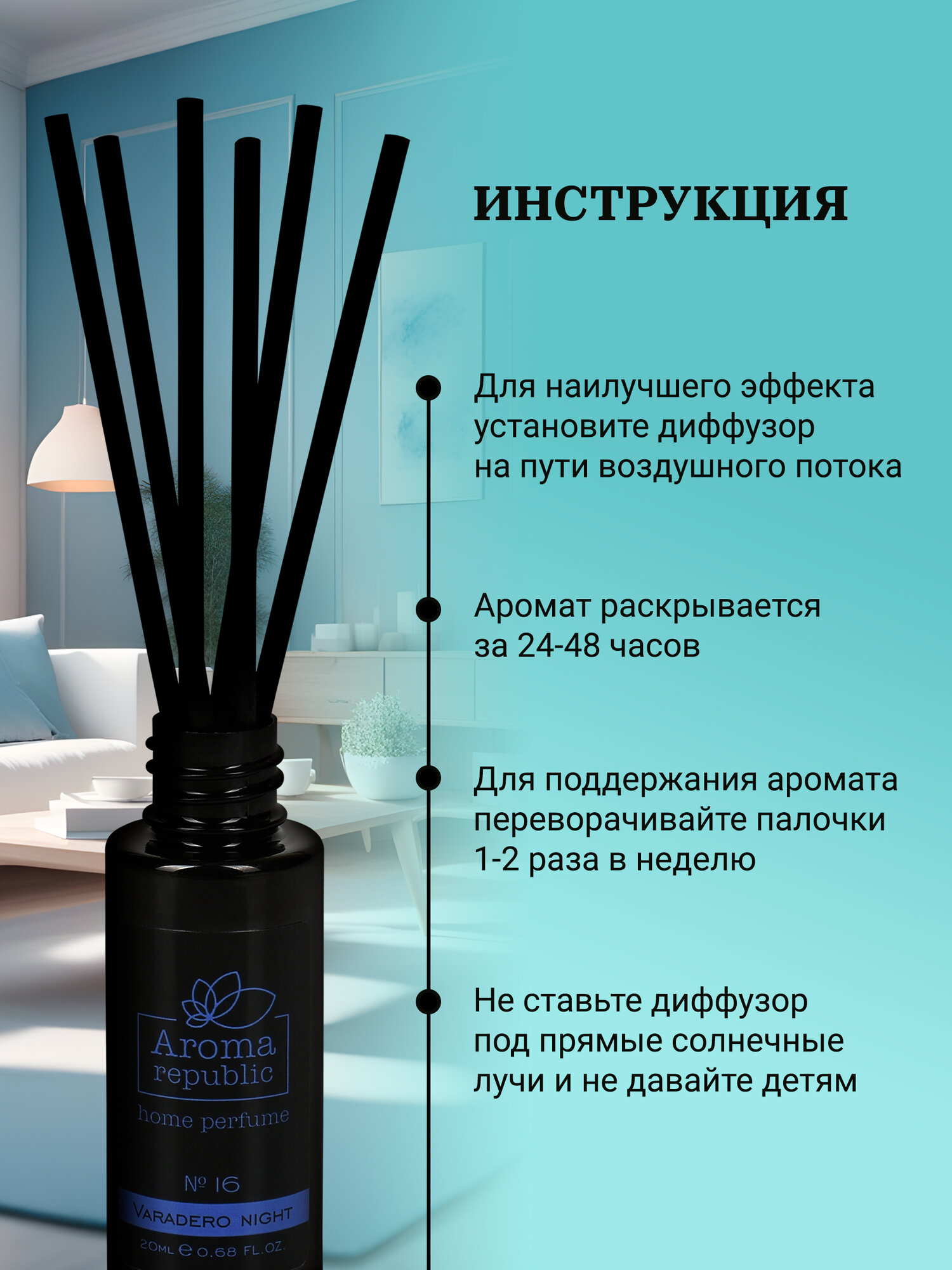 Купить Ароматический диффузор "Varadero Night" AROMA REPUBLIC, для комнаты, ванны, с палочками, 20мл
