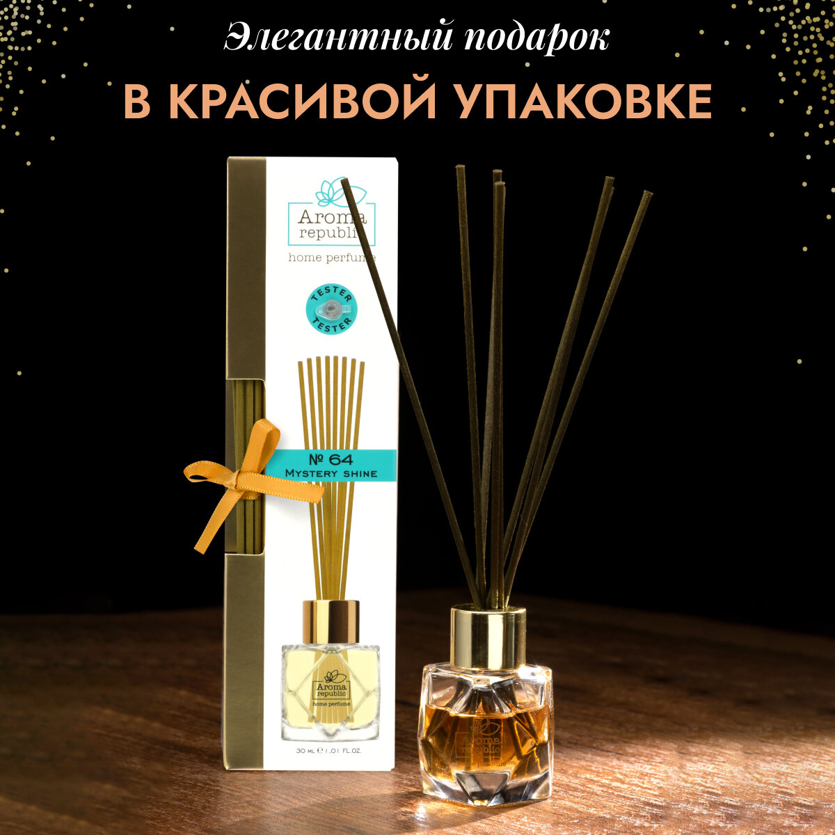 Купить Ароматический диффузор в стеклянном флаконе 30 мл,"№64 Mystery shine", AROMA REPUBLIC