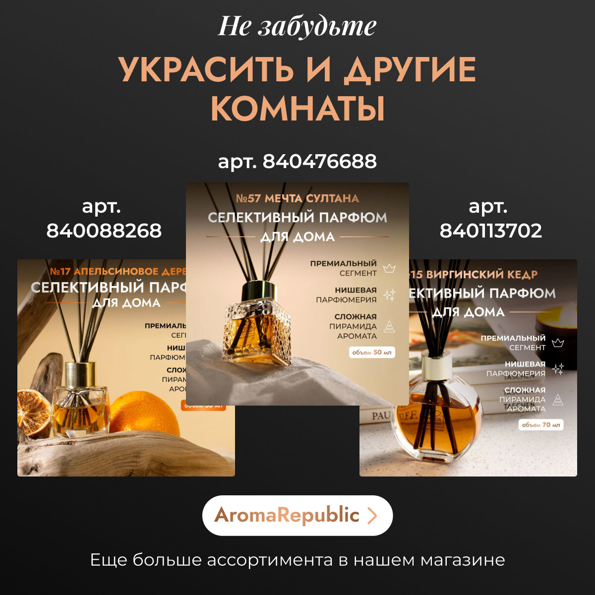 AROMA REPUBLIC Ароматический диффузор в стеклянном флаконе 50 мл,"№57 Sultan's dream"