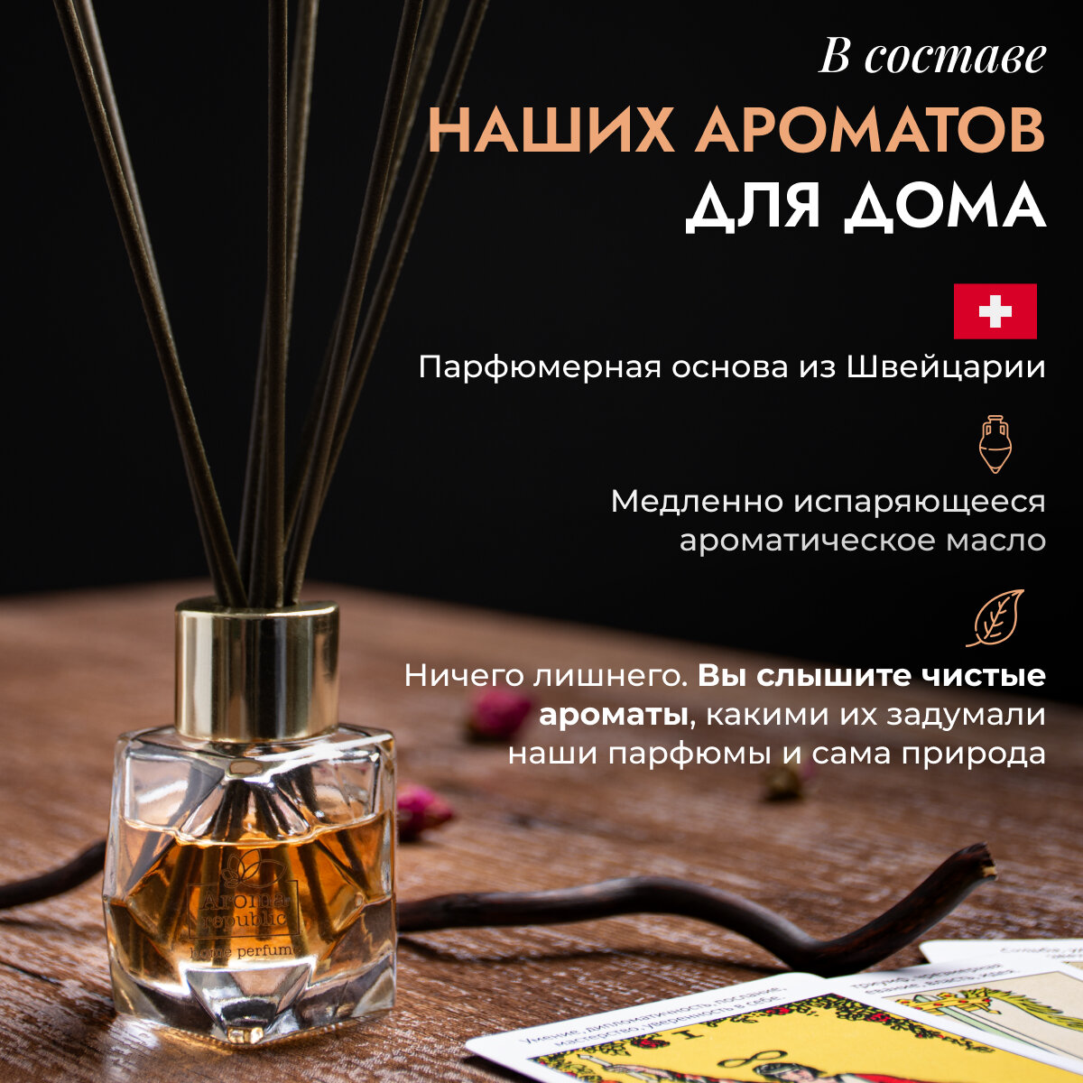 AROMA REPUBLIC Ароматический диффузор в стеклянном флаконе 70 мл,"№15 Wild tоbacco"