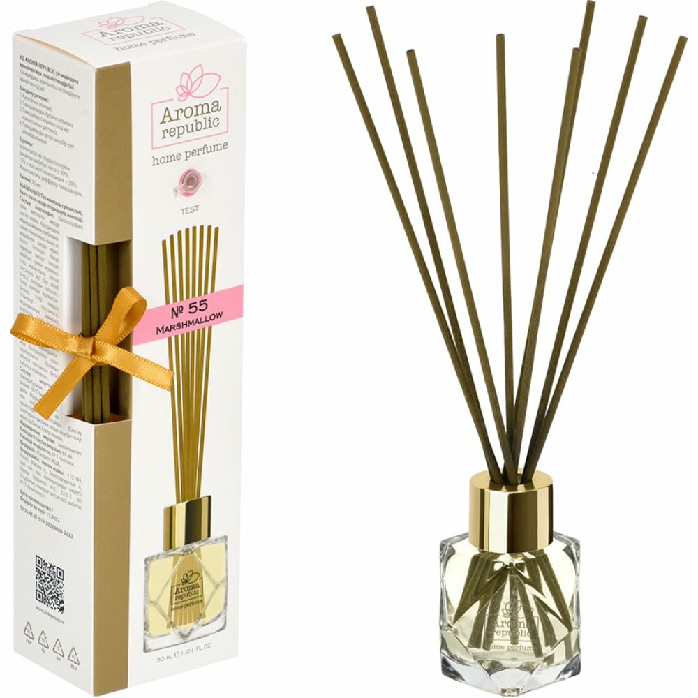 Купить Ароматический диффузор в стеклянном флаконе 30 мл,"№55 Marshmallow", AROMA REPUBLIC