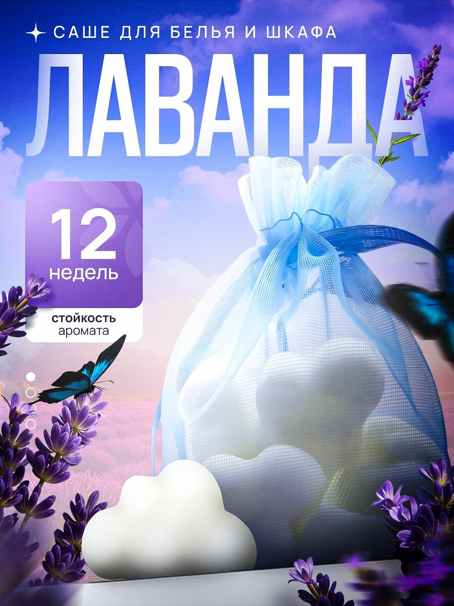 Саше для шкафа ароматическое, для белья, освежитель для одежды, Лаванда, 2 шт.