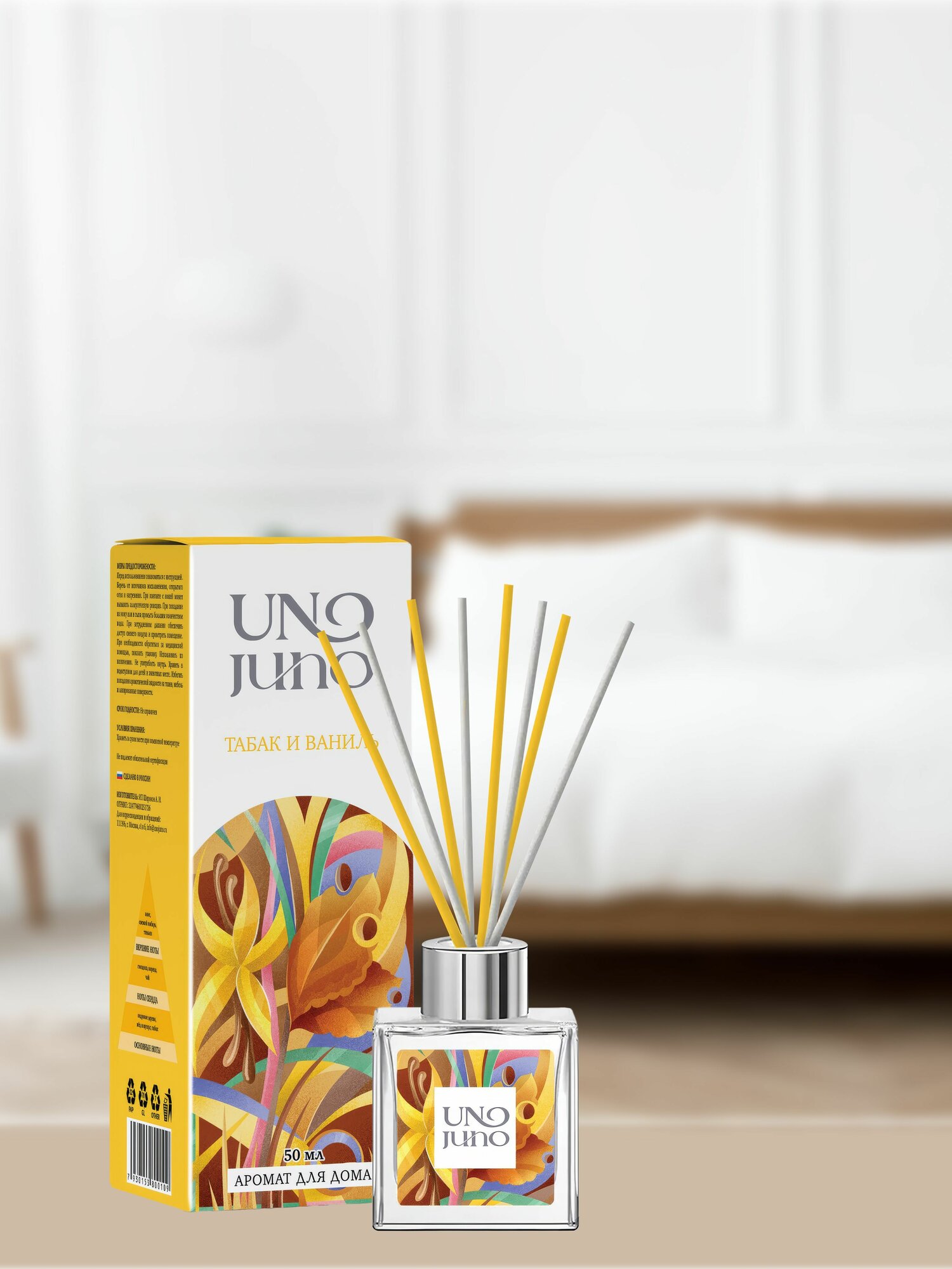 Аромадиффузор UnoJuno "Табак и Ваниль", 50 мл, жидкость, 8 палочек в комплекте