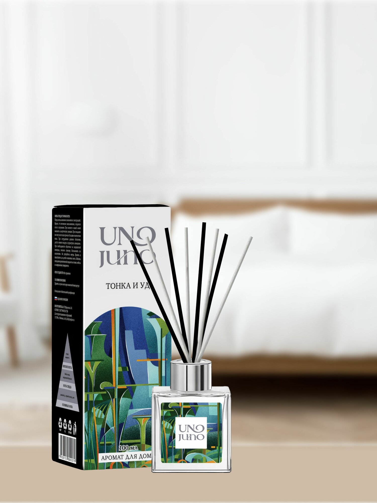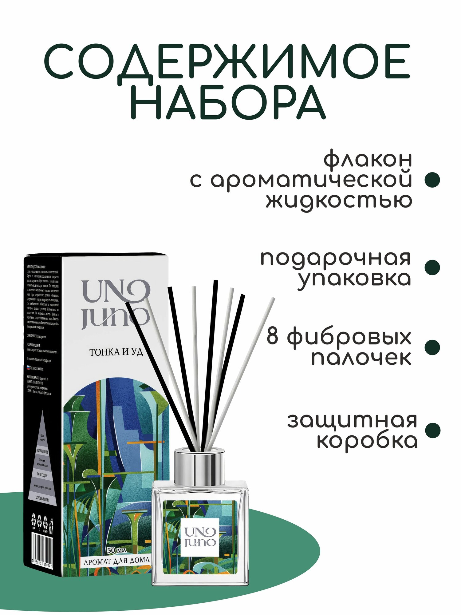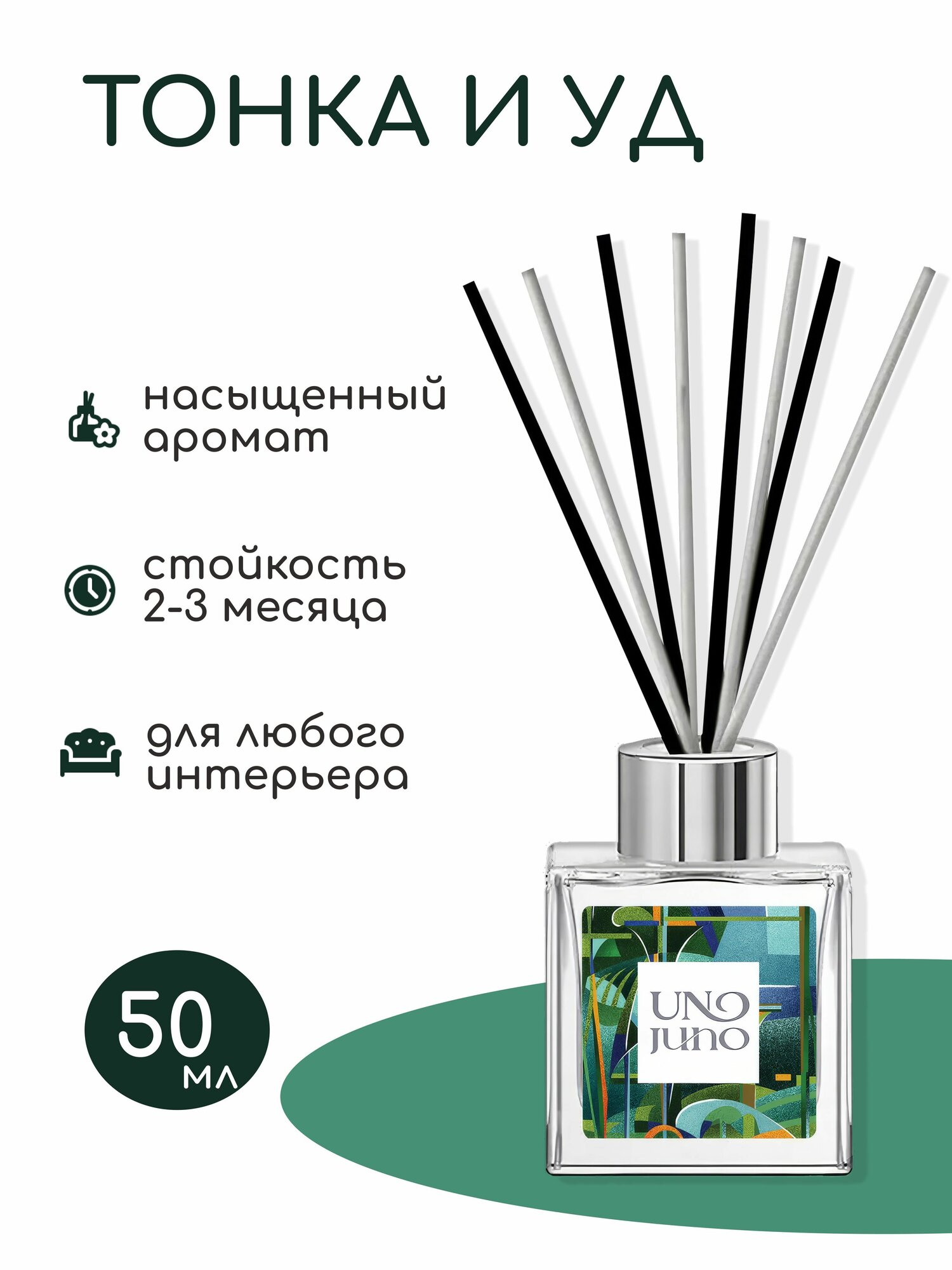 Купить Аромадиффузор UnoJuno "Тонка и Уд", 50 мл, жидкость, 8 палочек в комплекте