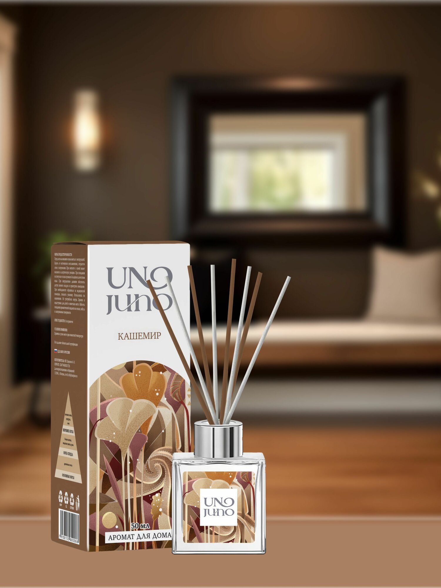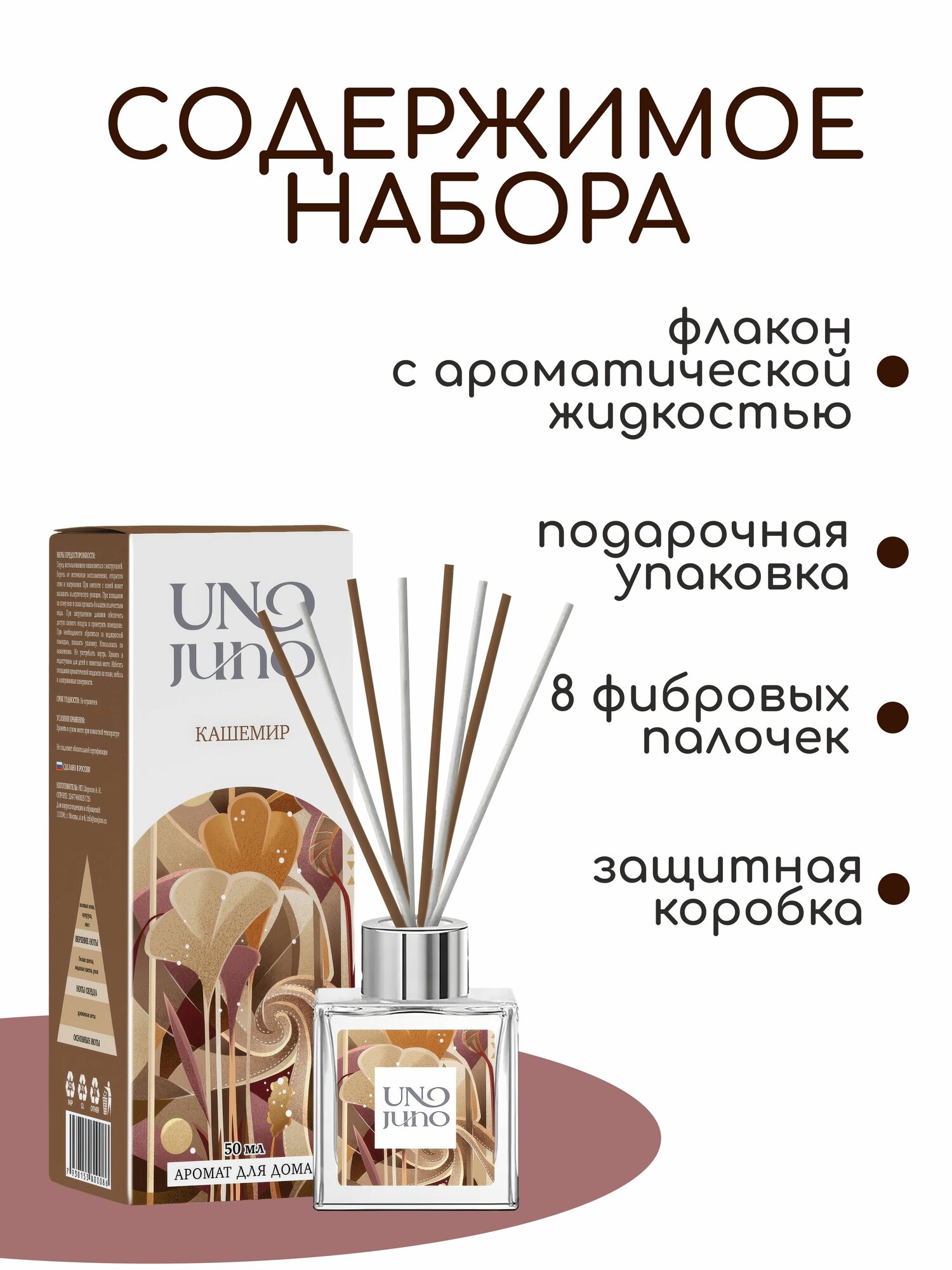 Купить Аромадиффузор UnoJuno "Кашемир", 50 мл, жидкость, 8 палочек в комплекте