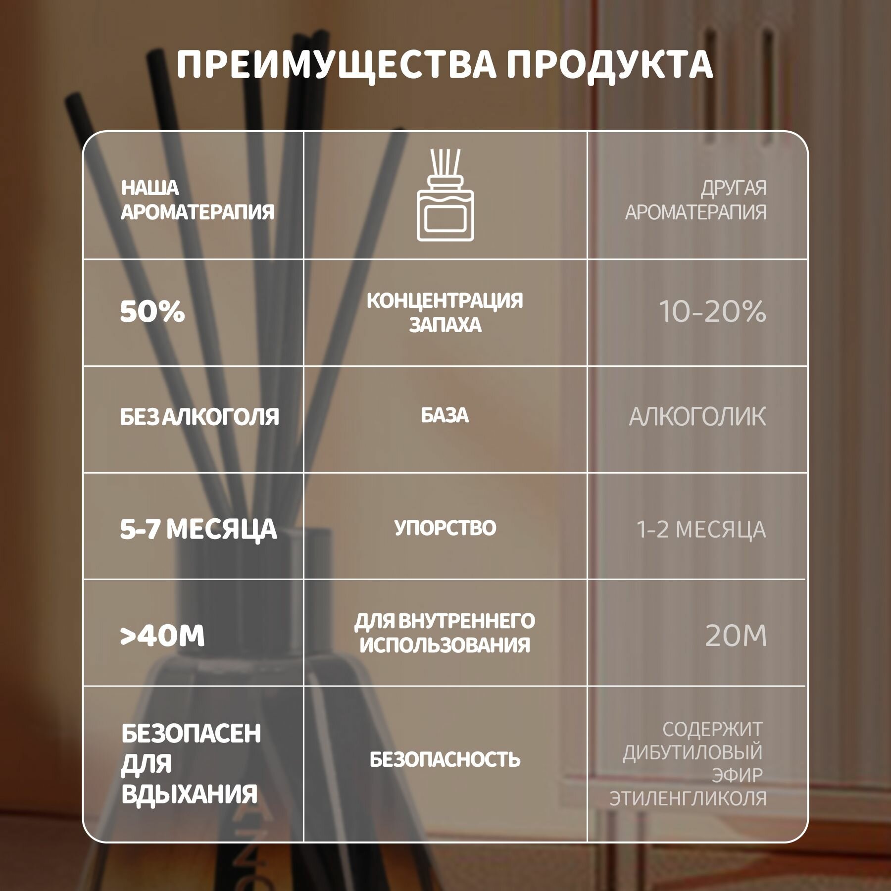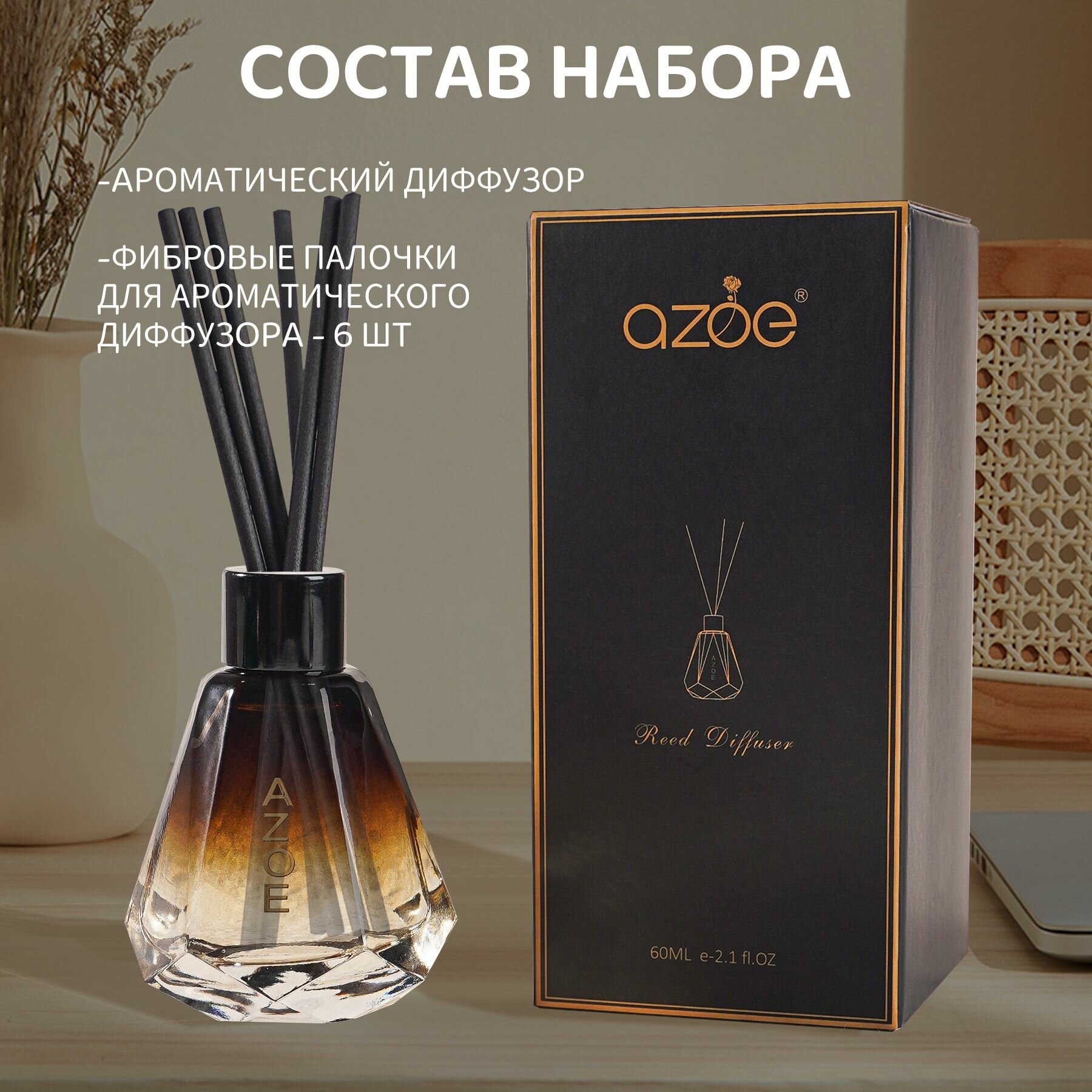 Диффузор для дома, ароматизатор с палочками 50 мл*4 шт