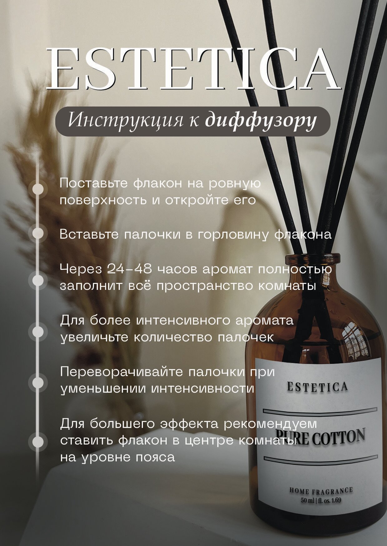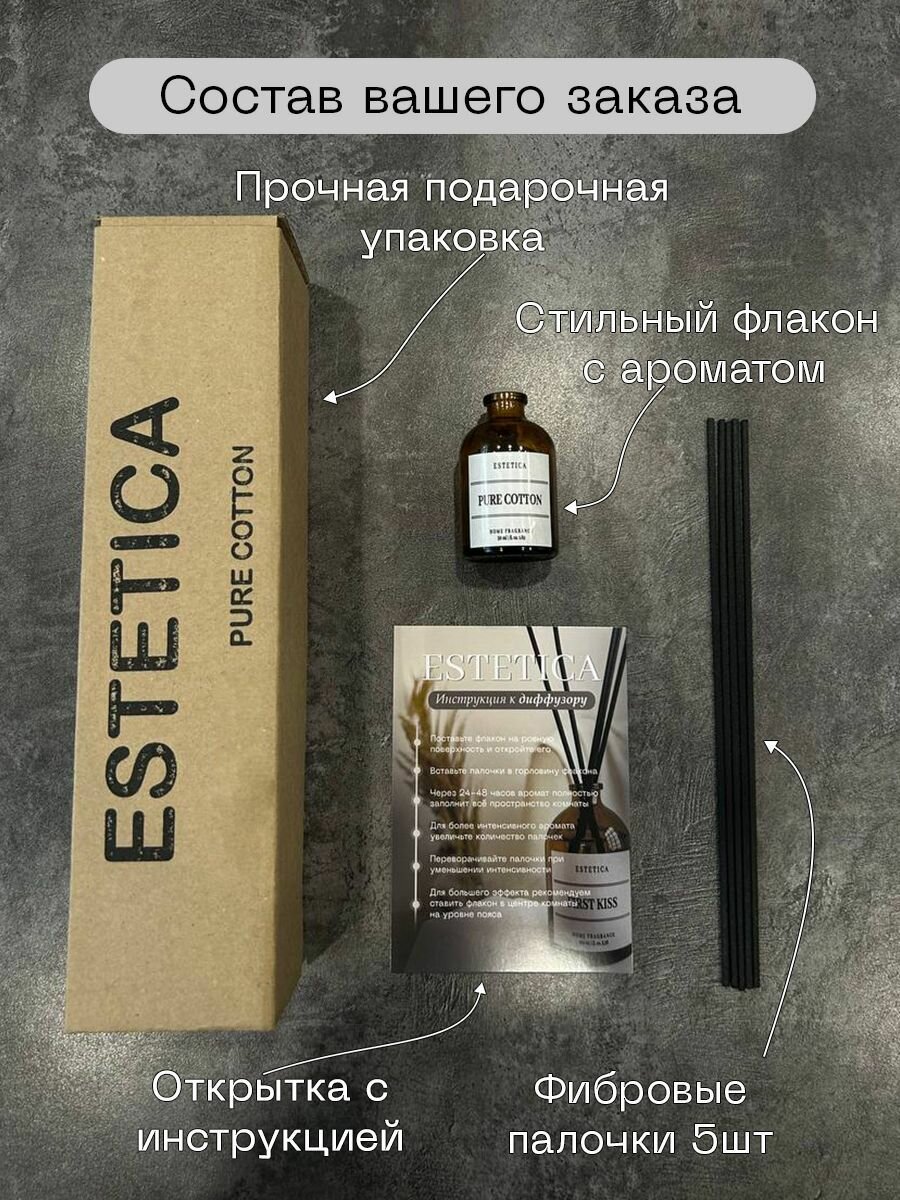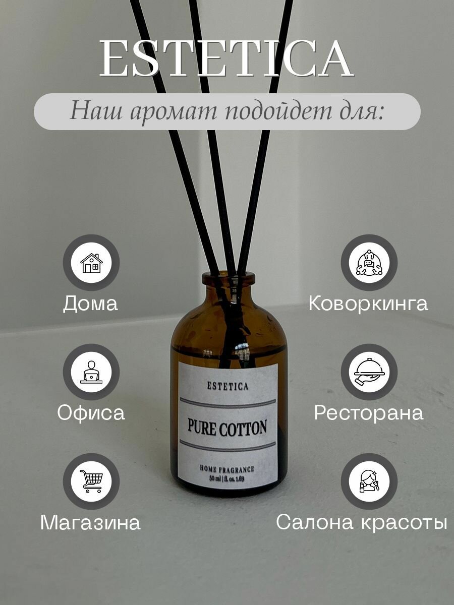 СохранитьАроматизатор для дома, Диффузор ароматический с палочками ESTETICA Хлопок и Мускус 50 мл интересное:
