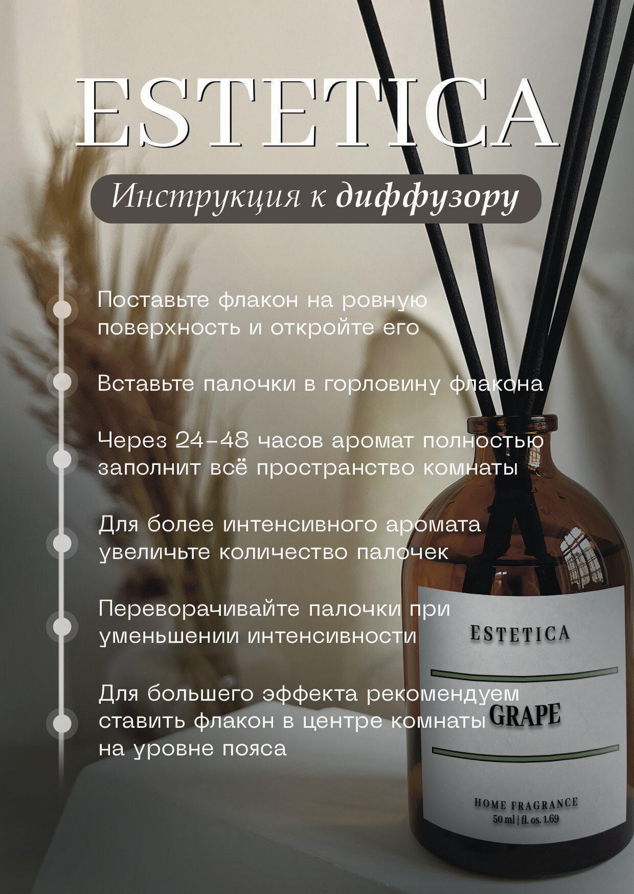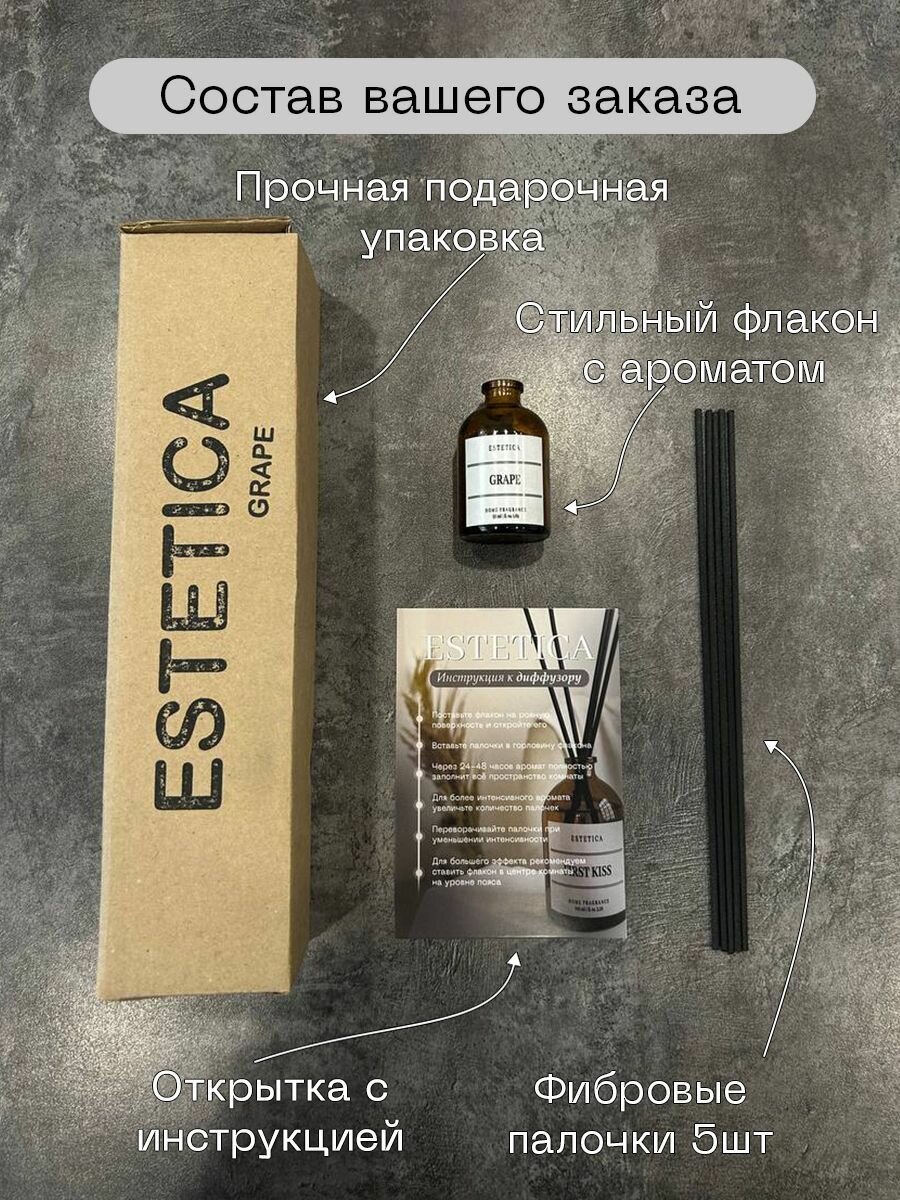 СохранитьАроматизатор для дома, Диффузор ароматический с палочками ESTETICA Виноград и Миндаль 50 мл интересное: