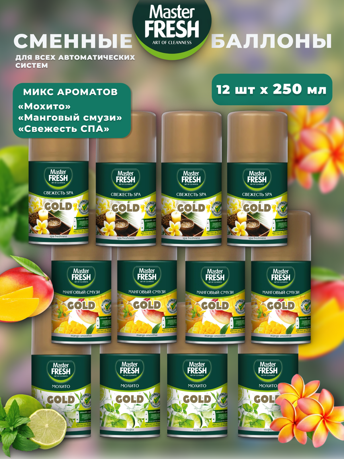 Набор освежителей воздуха Master Fresh, автоматический, аэрозоль, 12 баллонов, 250 мл