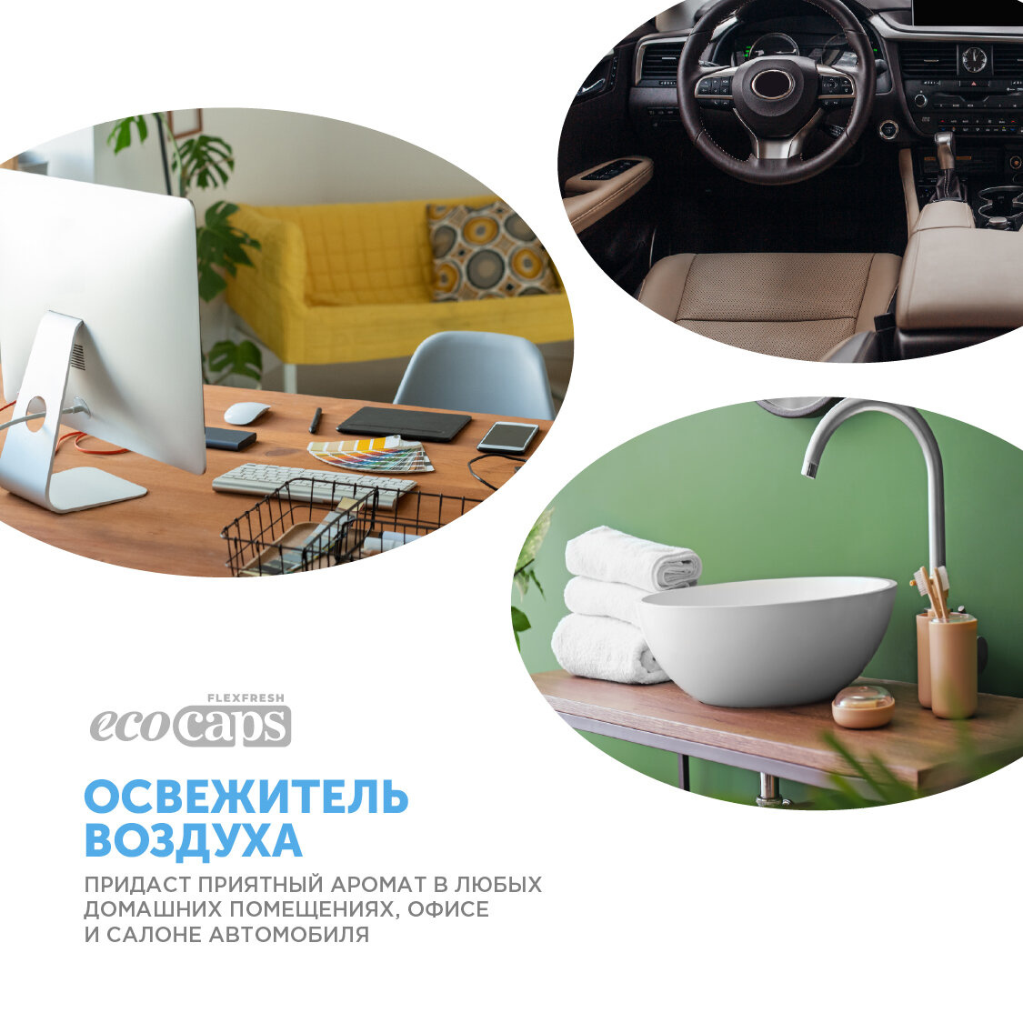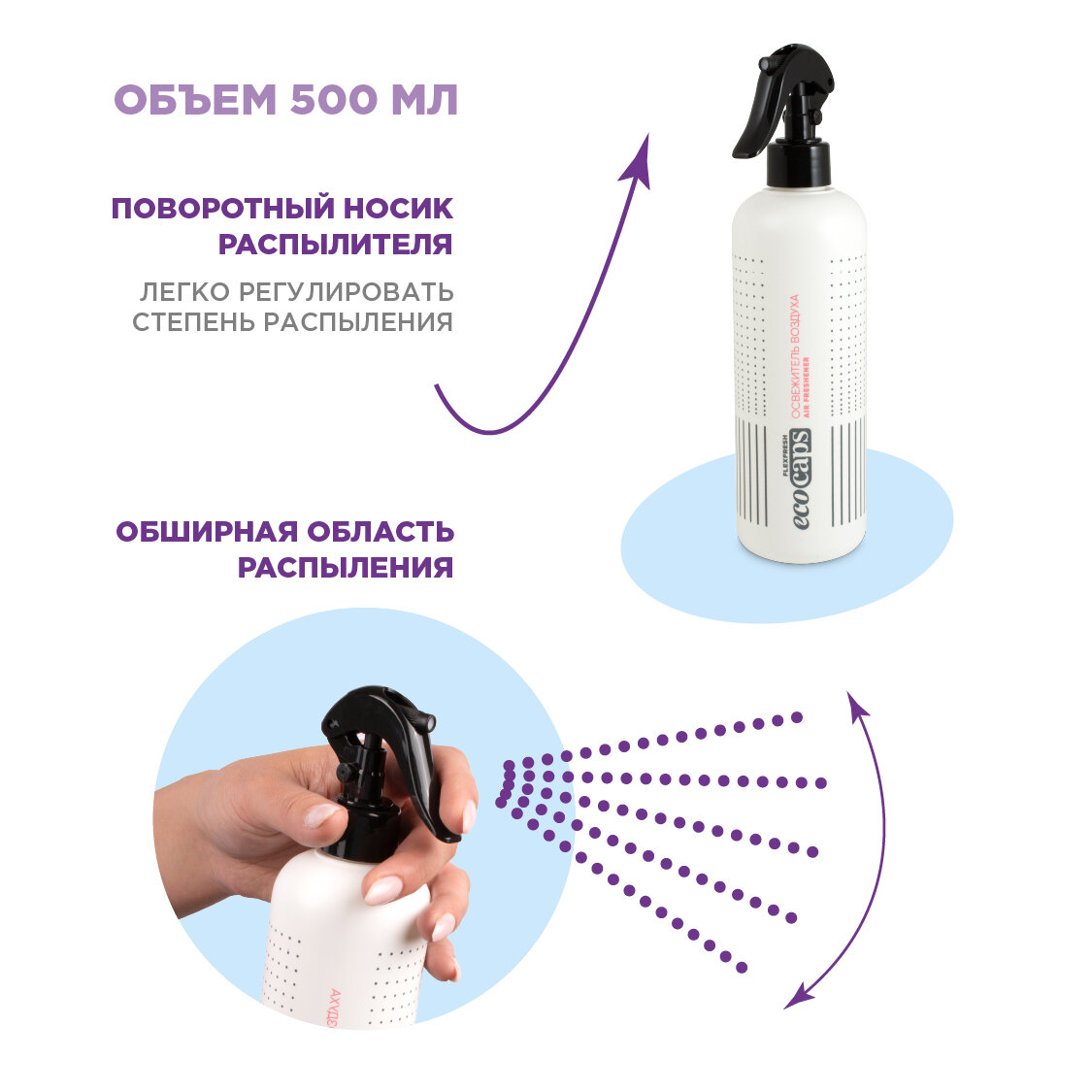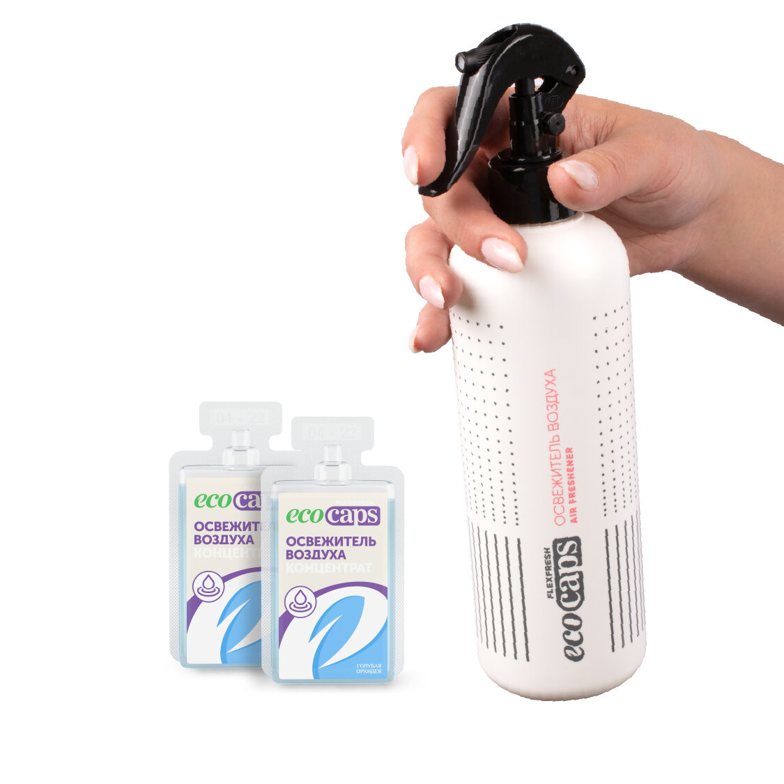Освежитель воздуха EcoCaps (концентрат для разведения водой) 2 шт по 50 мл + белый флакон, аромат Утренняя свежесть