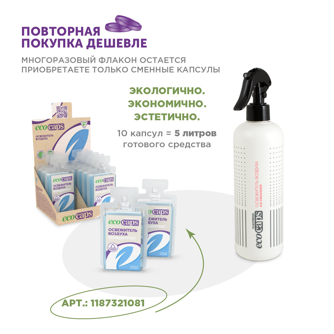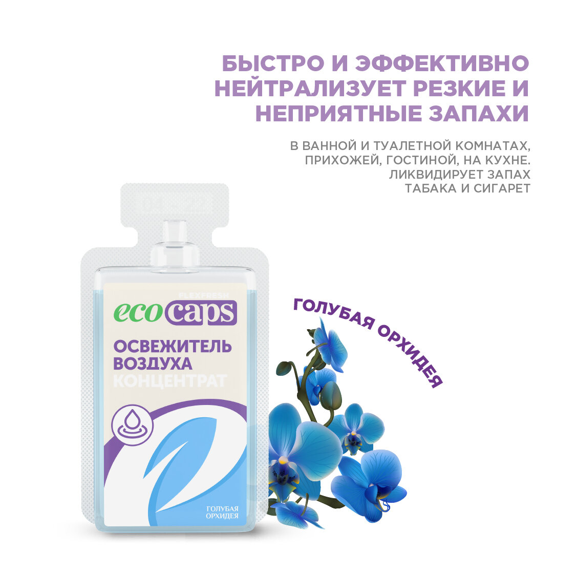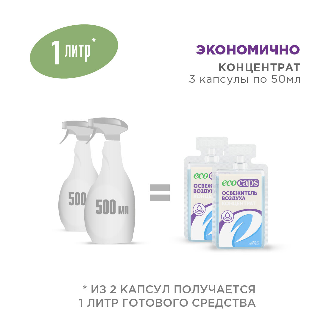Освежитель воздуха EcoCaps (концентрат для разведения водой) 2 шт по 50 мл + белый флакон, аромат Голубая орхидея интересное: