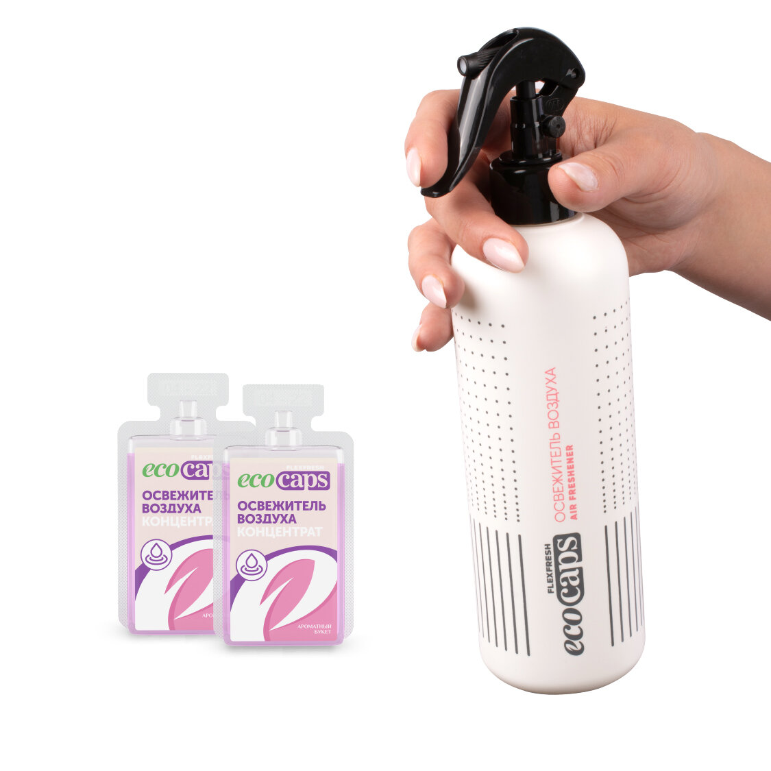 Освежитель воздуха EcoCaps (концентрат для разведения водой) 2 шт по 50 мл + белый флакон, аромат Утренняя свежесть