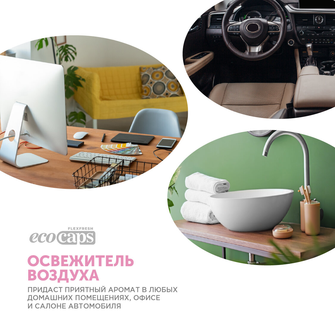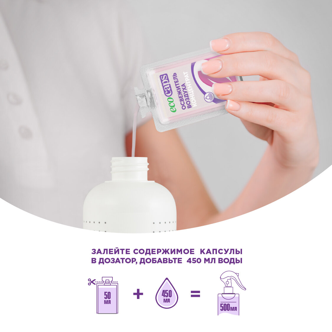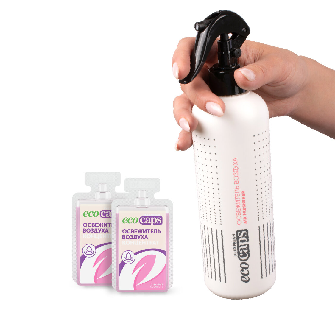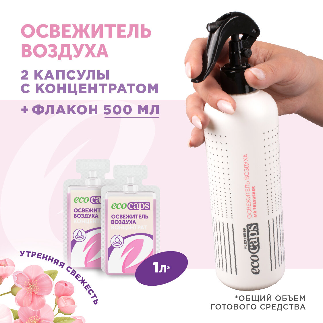 Освежитель воздуха EcoCaps (концентрат для разведения водой) 2 шт по 50 мл + белый флакон, аромат Утренняя свежесть интересное: