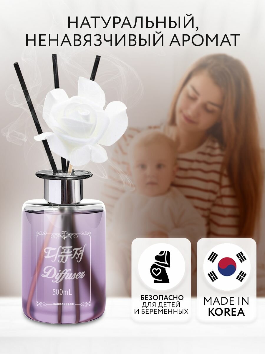 Купить Ароматизатор диффузор для дома с палочками Sandokkaebi с ароматом свежей летней лаванды в стеклянном флаконе, 500 мл