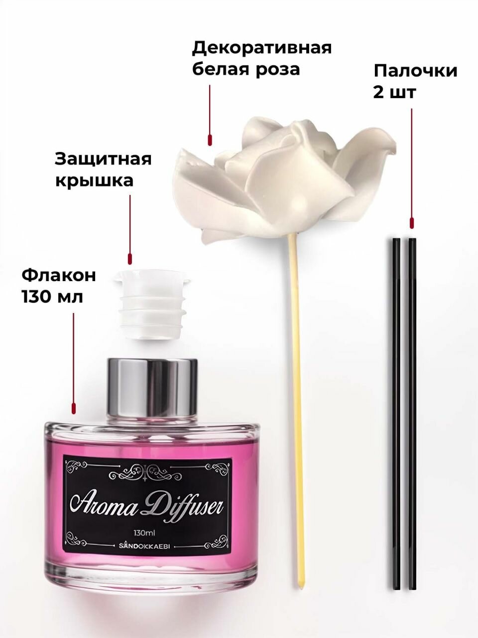 Ароматизатор диффузор для дома с палочками Sandokkaebi с ароматом кисло-сладкой и свежей черной вишни в стеклянном флаконе, 500 мл