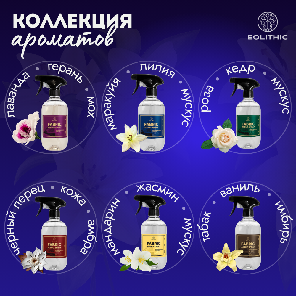 Спреевый ароматизатор для текстиля EOLITHIC FABRIC AROMA SPRAY №4 - Маракуйя / Лилия / Мускус 475 мл интересное: