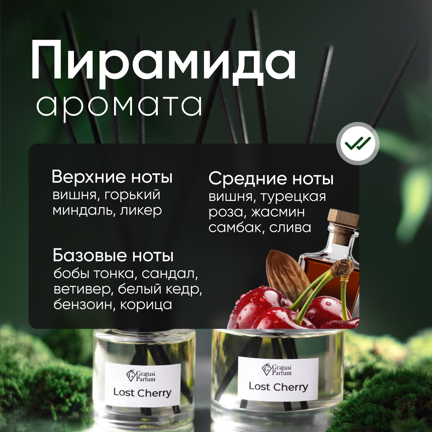 Диффузор для дома с палочками, Lost Cherry, 50мл / Освежитель воздуха в квартиру Gratus Parfum