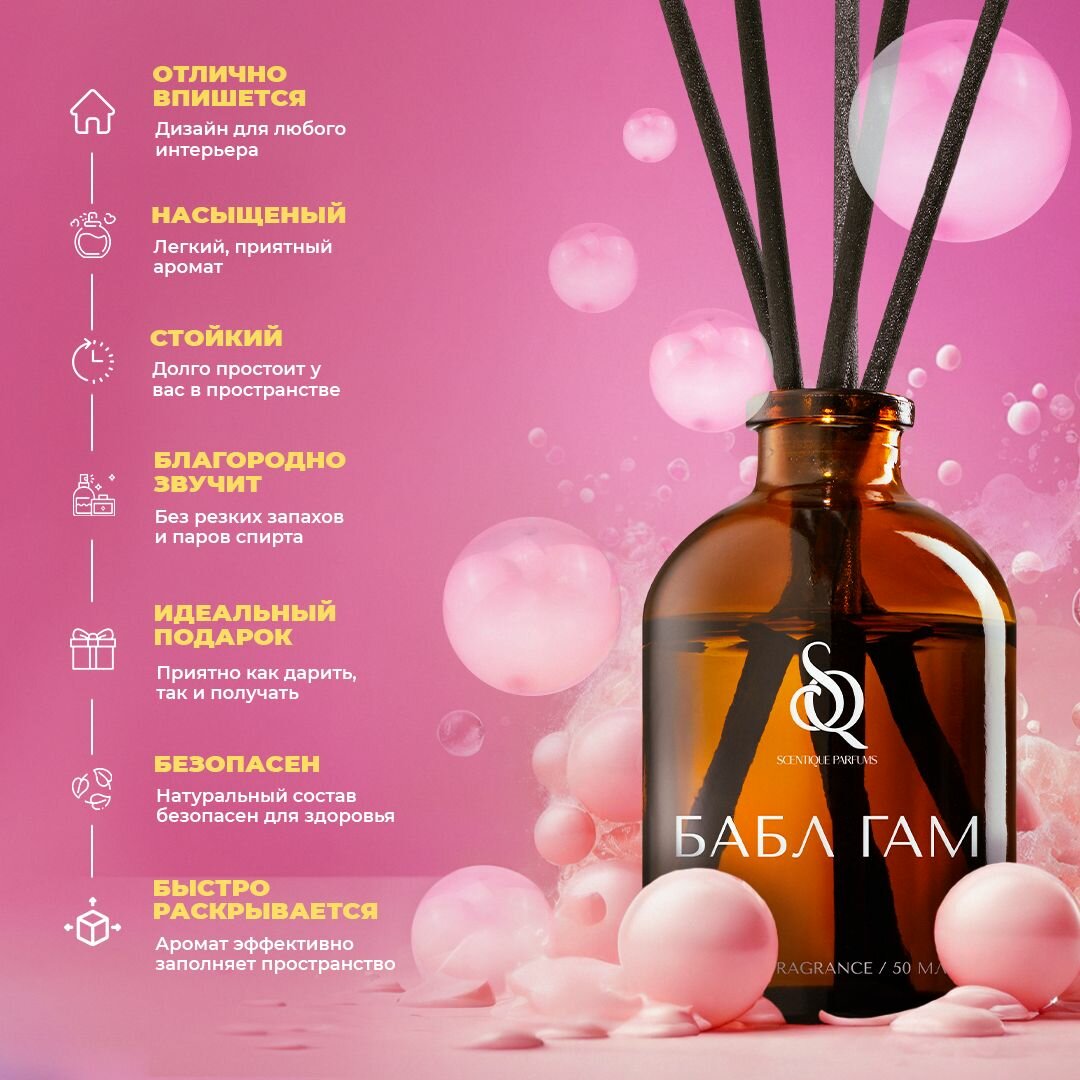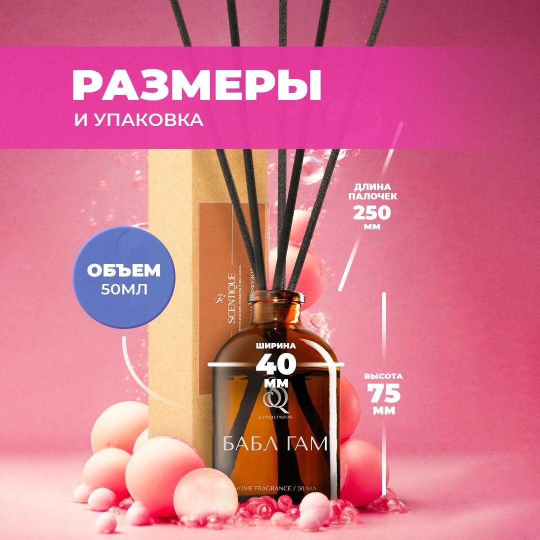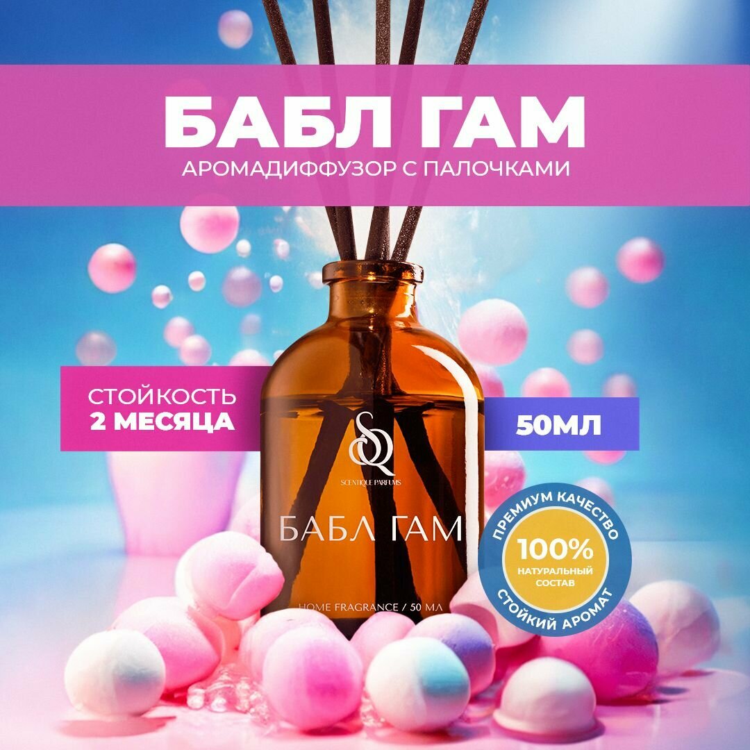 Ароматический диффузор для дома, Бабл Гам, 50 мл, Ароматизатор для дома с палочками пахучка интересное: