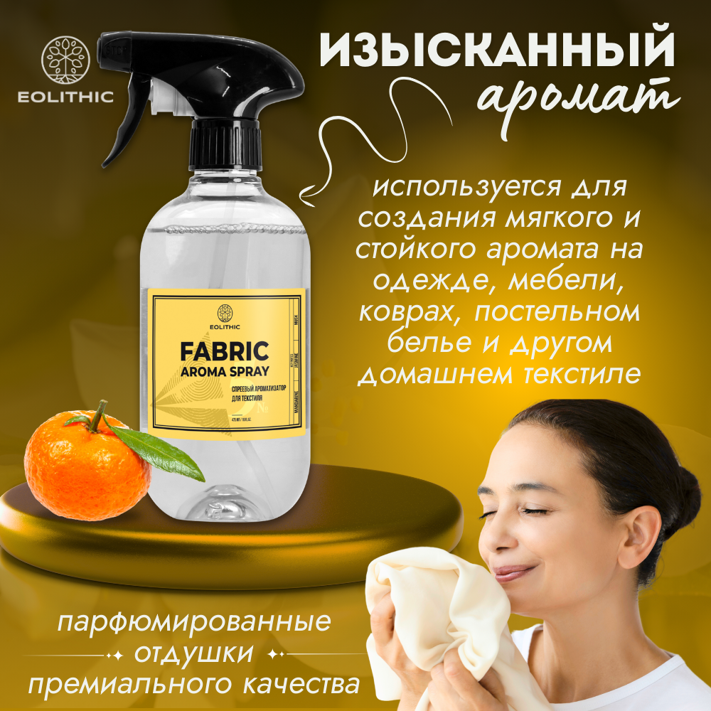 Спреевый ароматизатор для текстиля EOLITHIC FABRIC AROMA SPRAY №5 - Мандарин / Жасмин / Мускус 475 мл интересное: